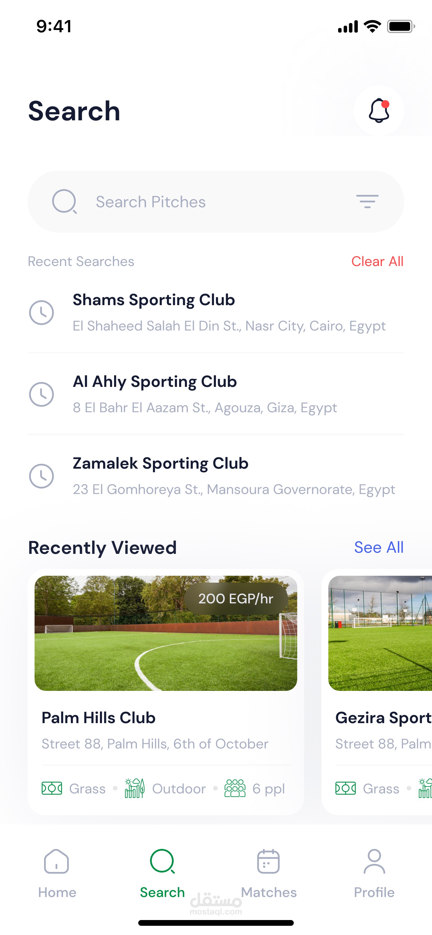 تتيح للمستخدمين تصفية الملاعب حسب الموقع والمرافق والتوافر.