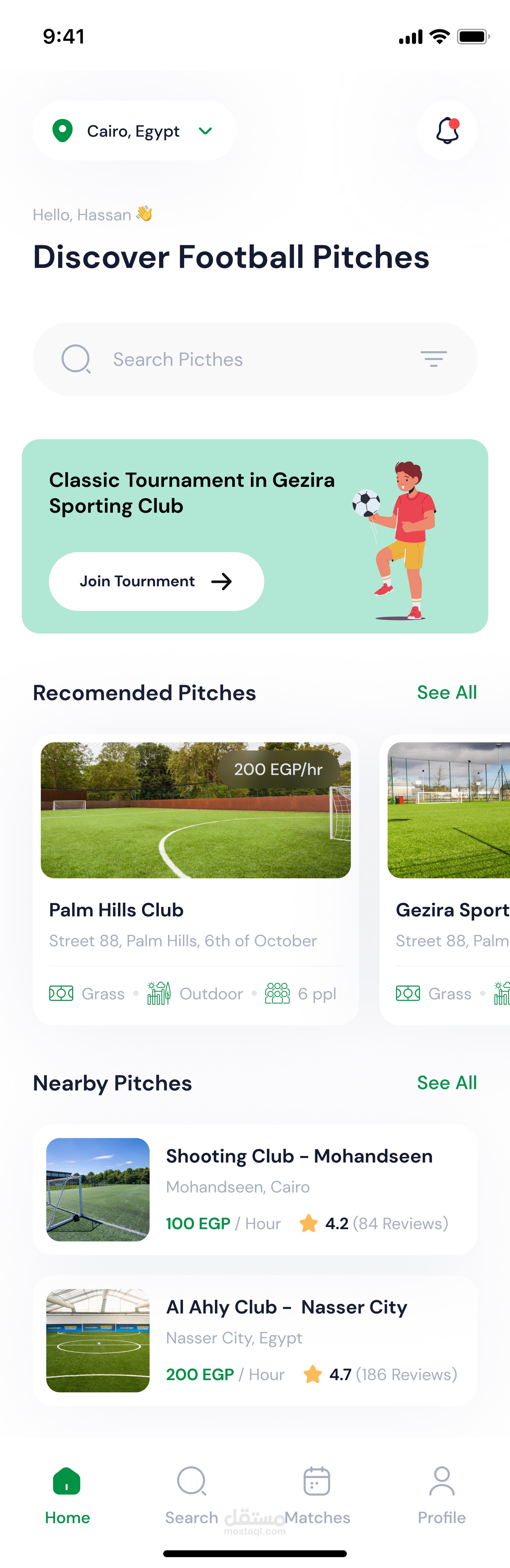 يبسط التطبيق عملية حجز ملاعب كرة القدم للاعبين في مصر ويجعلها أكثر ملاءمة وسهولة.