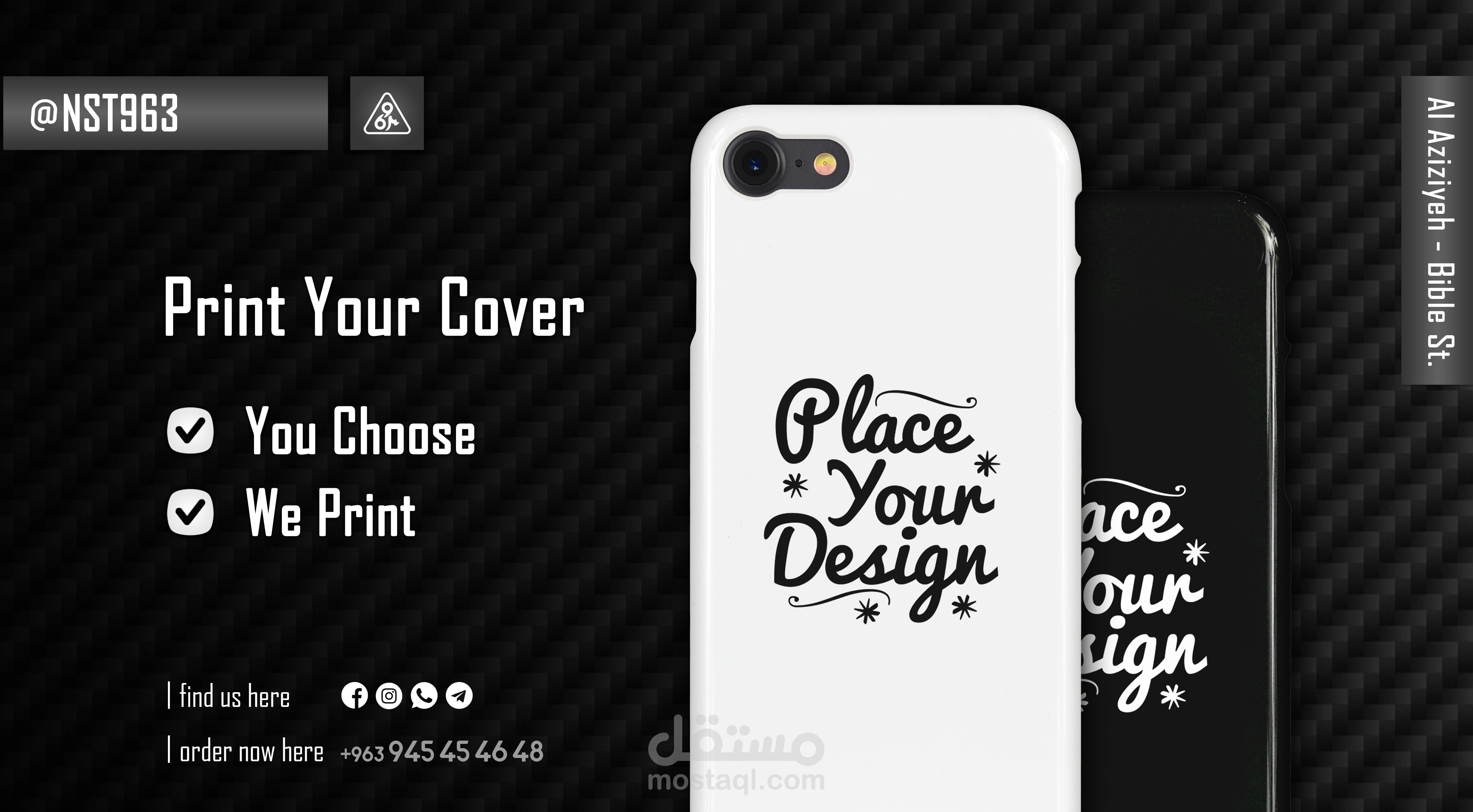 فكرة التصميم : تم استوحاء اسم المتجر وشعاره من رقم النداء العالمي لسوريا +963, تم المزج ما بين الترقيم العربي والاتكليزي في التصميم.