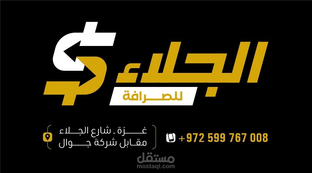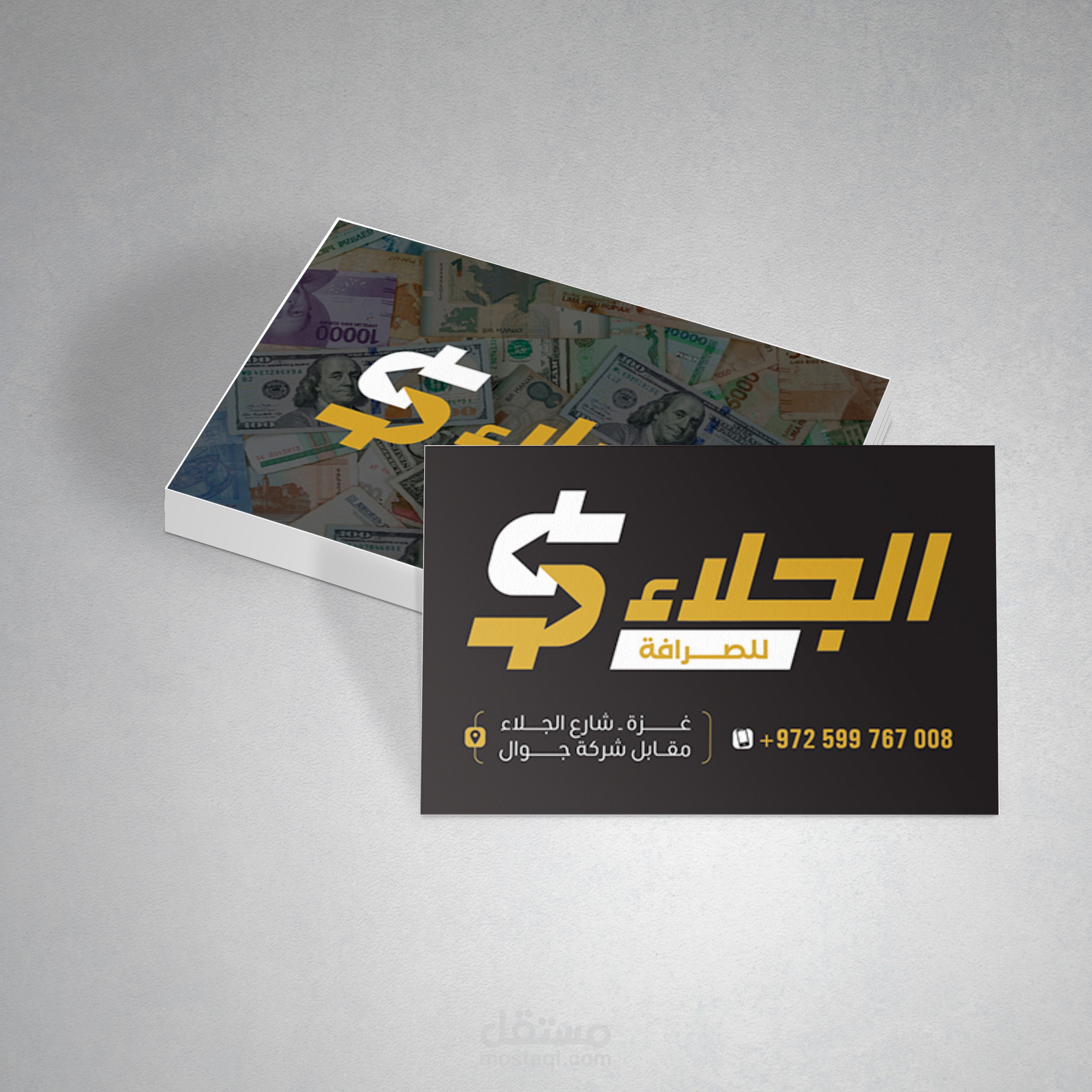 تصميم بطاقة عمل لصالح محل صرافة باستخدام برنامجي الفوتوشوب والاليستريتور .