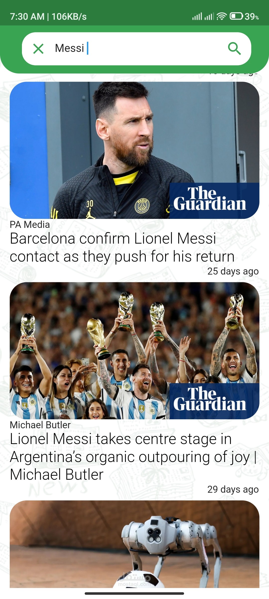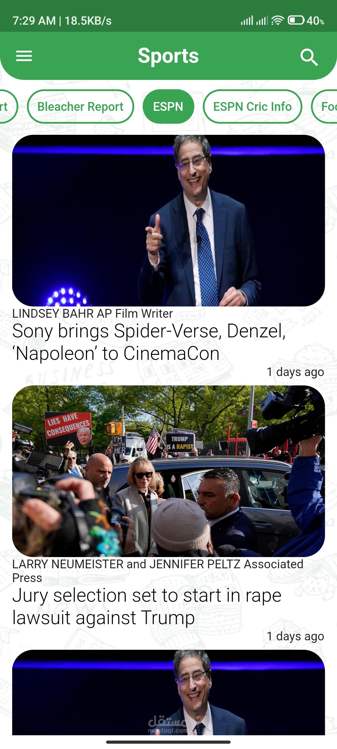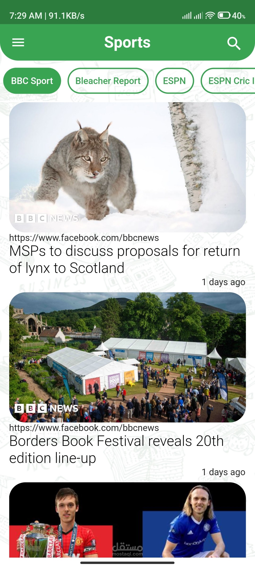 تم استخدام Free News Api لاستكمال التطبيق وعرض الاخبار عن طريق عدة مصادر بداخل كل مجال.