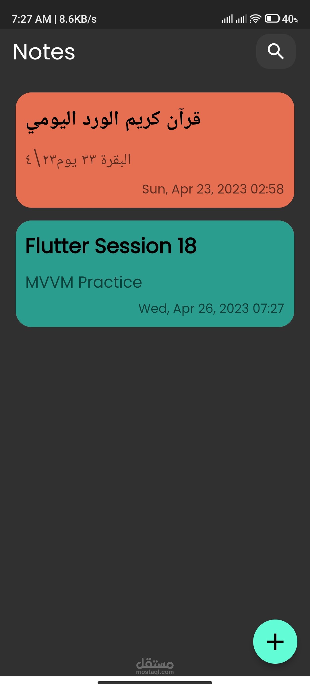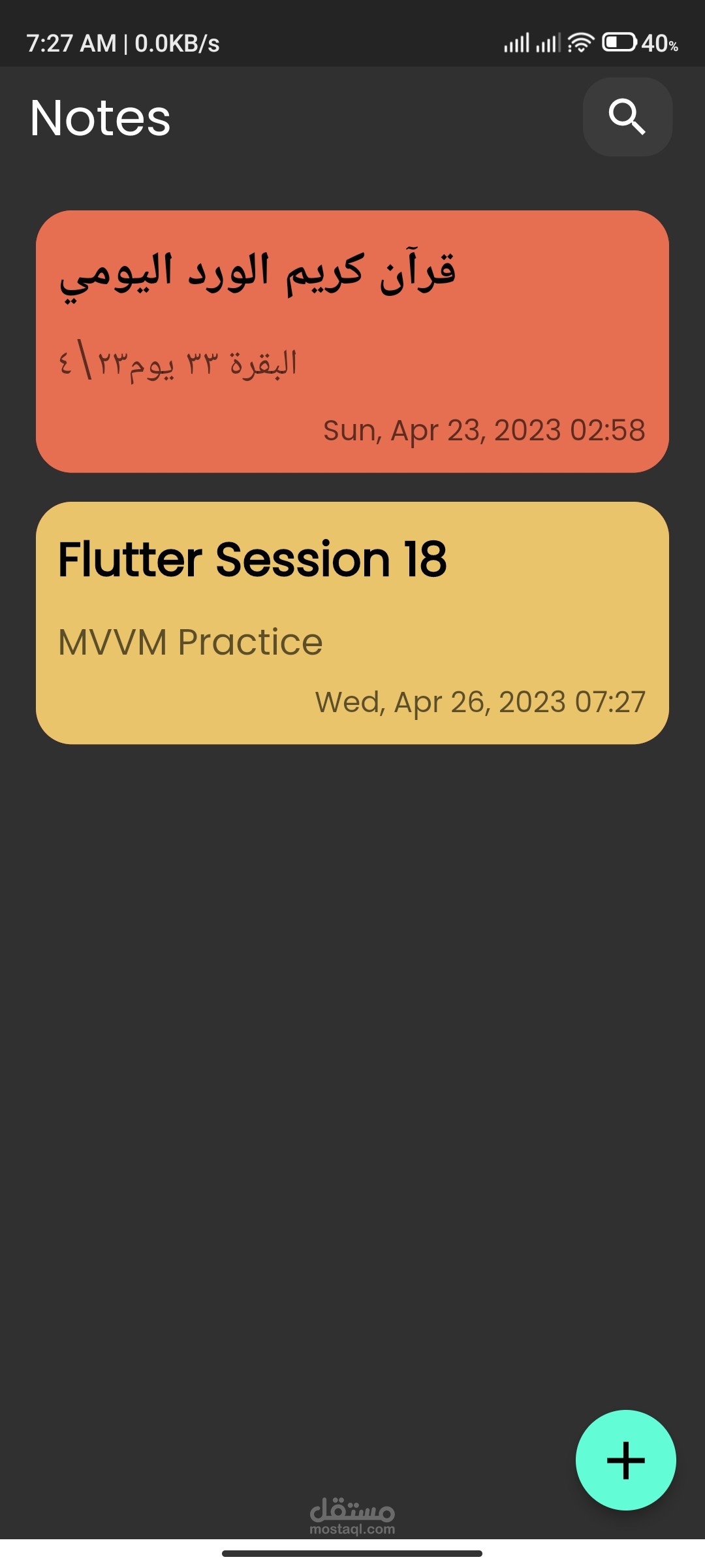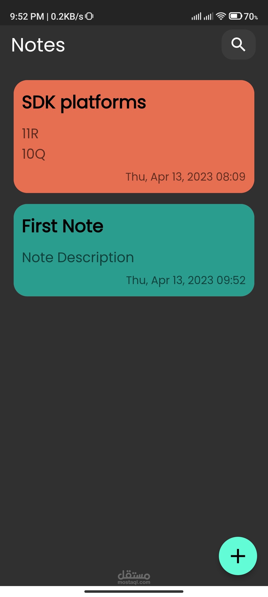 التطبيق يدعم اضافة وتعديل والسحب من الجنب لمسح الملاحظة.