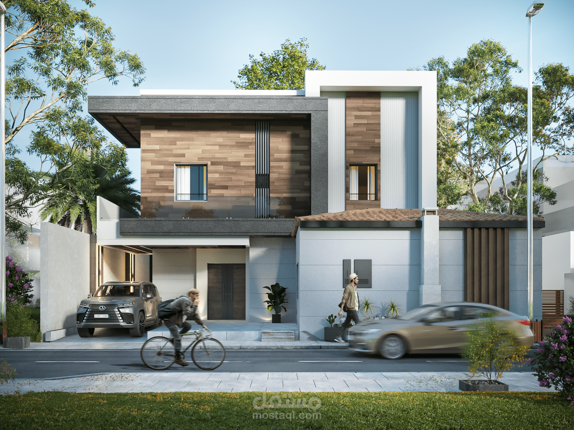 تصميم واجهة فيلا على الطراز الحديث في المملكة العربية السعودية