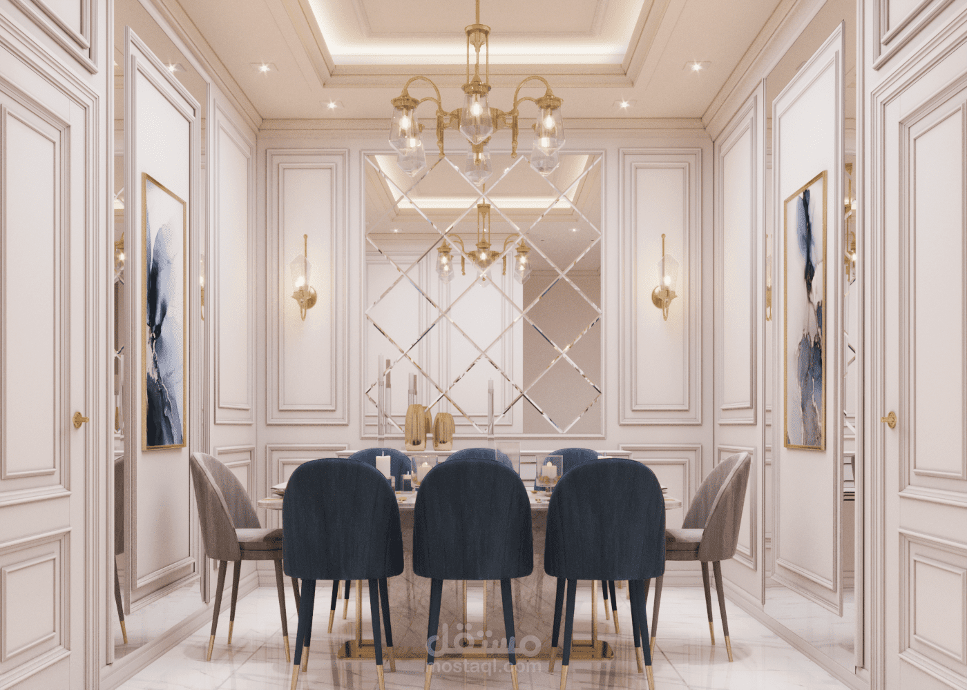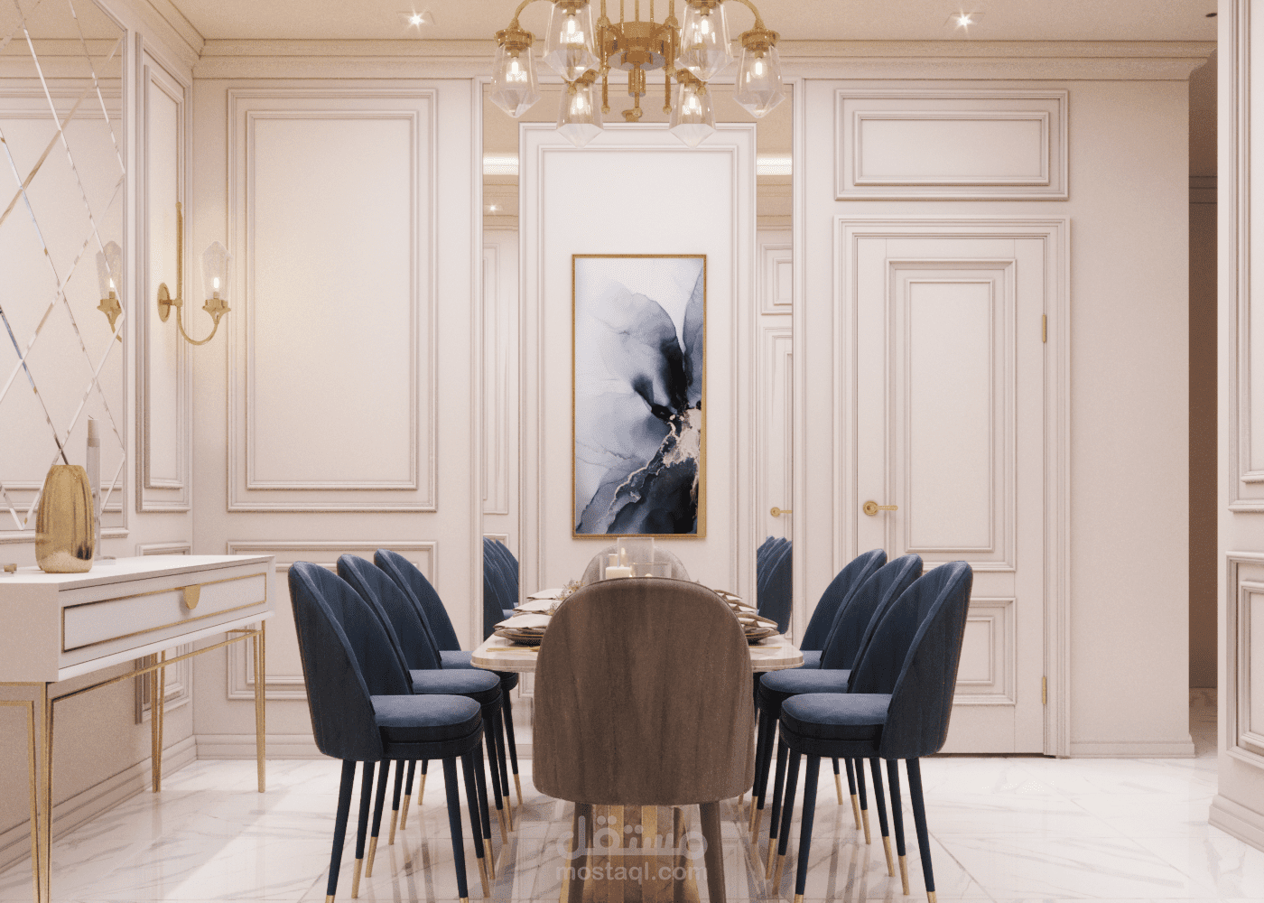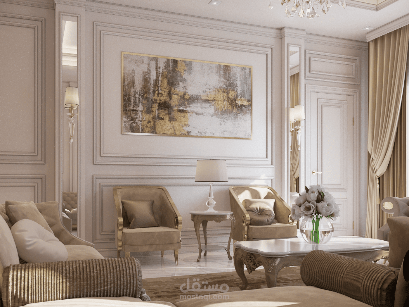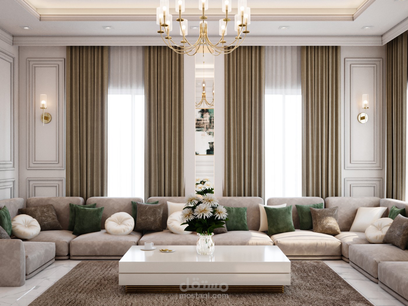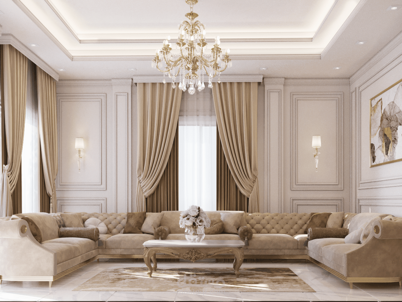 تصميم داخلي لفيلا سكنية على الطراز نيوكلاسيك في الإمارات العربية المتحدة