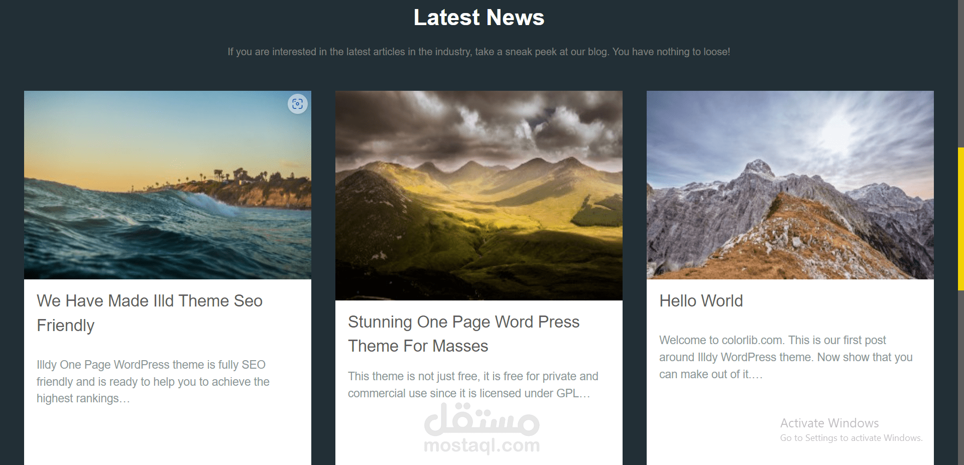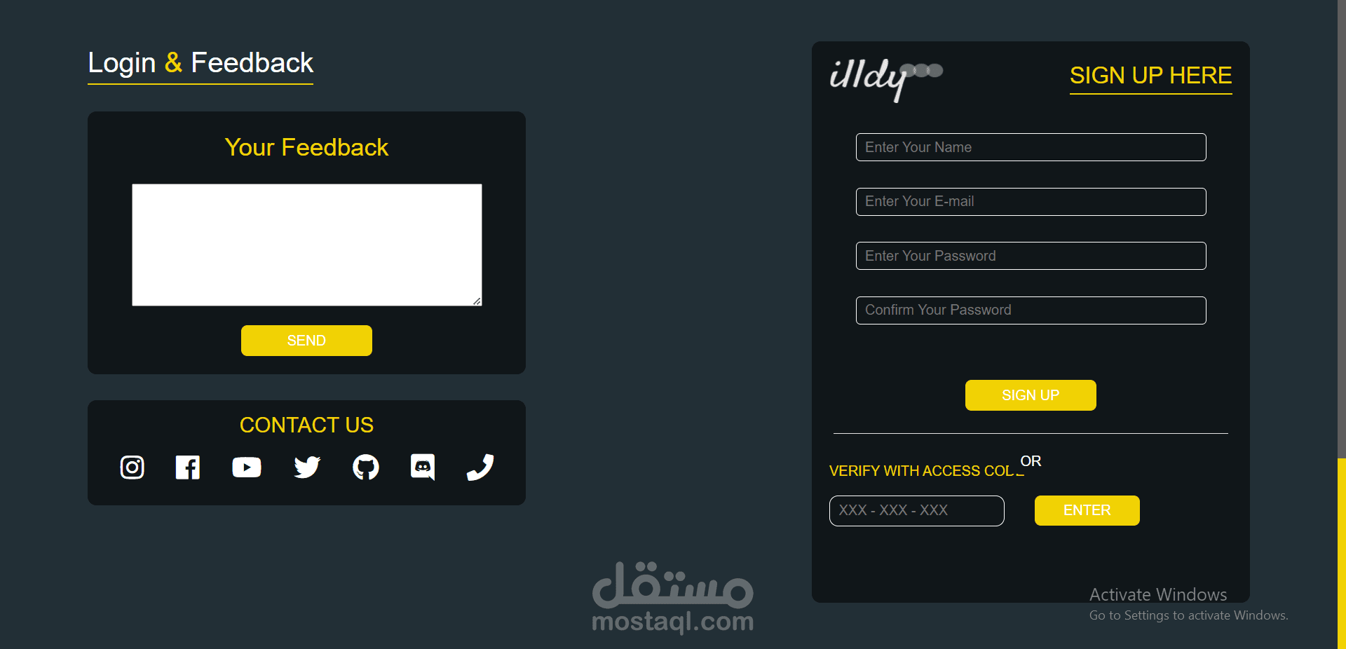 موقع ILLDY DEMO هو مشروع تطبيقي علي Front - End Development