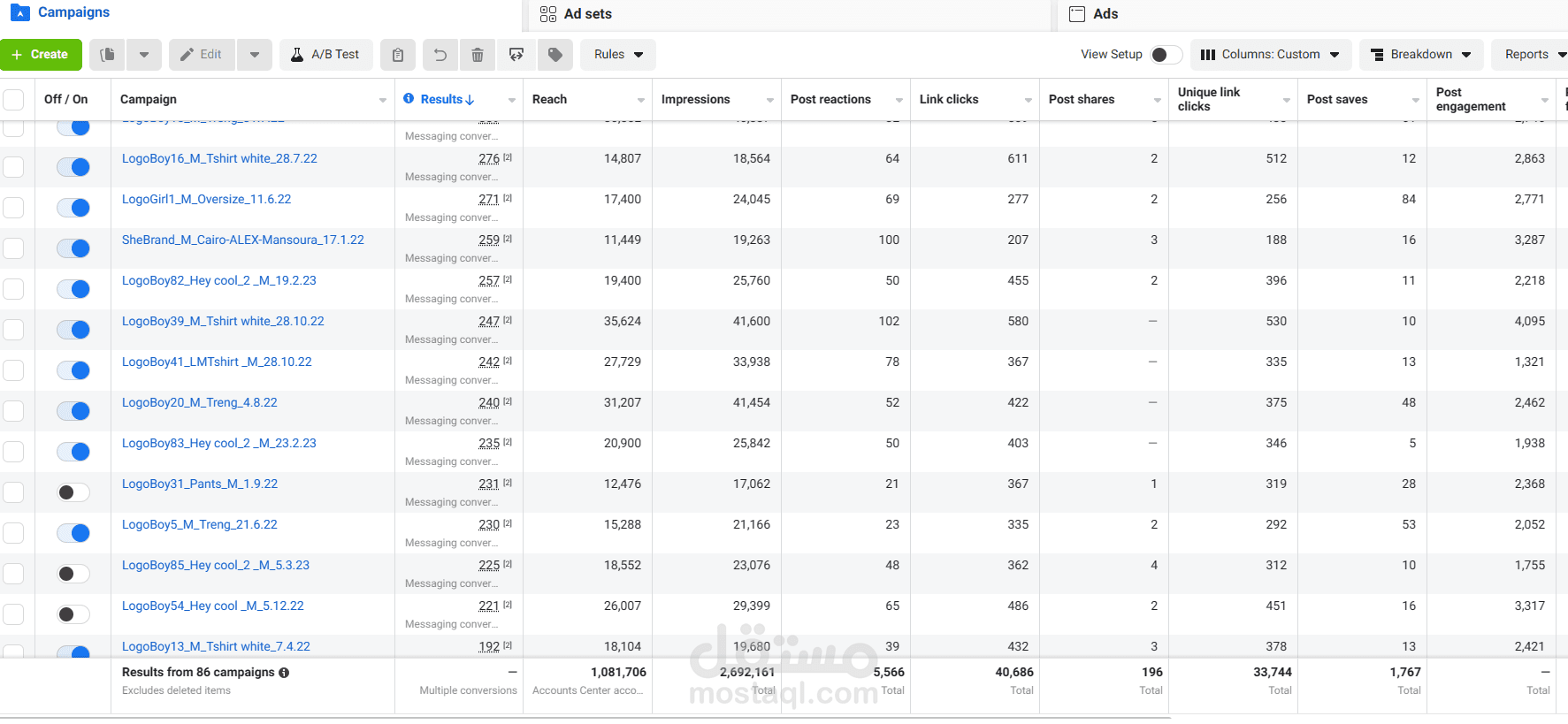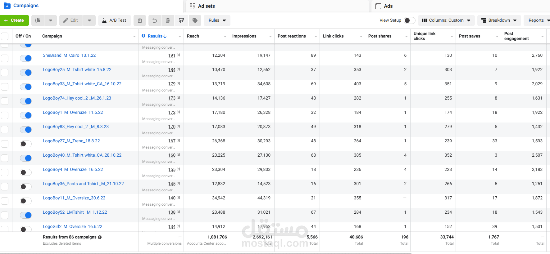 •قياس أداء الحملات التسويقية في الشركة وكتابة التقارير حول الأداء