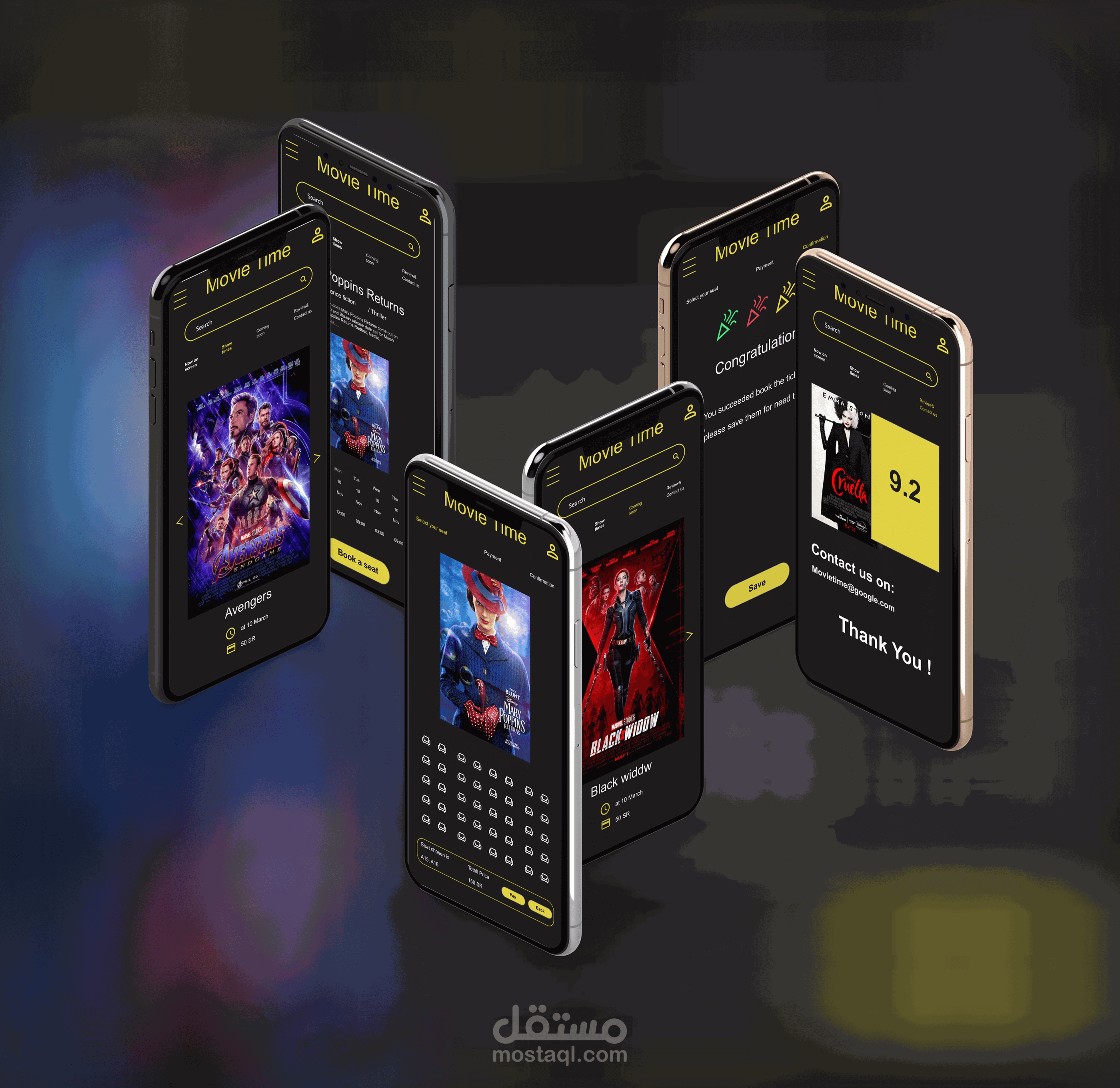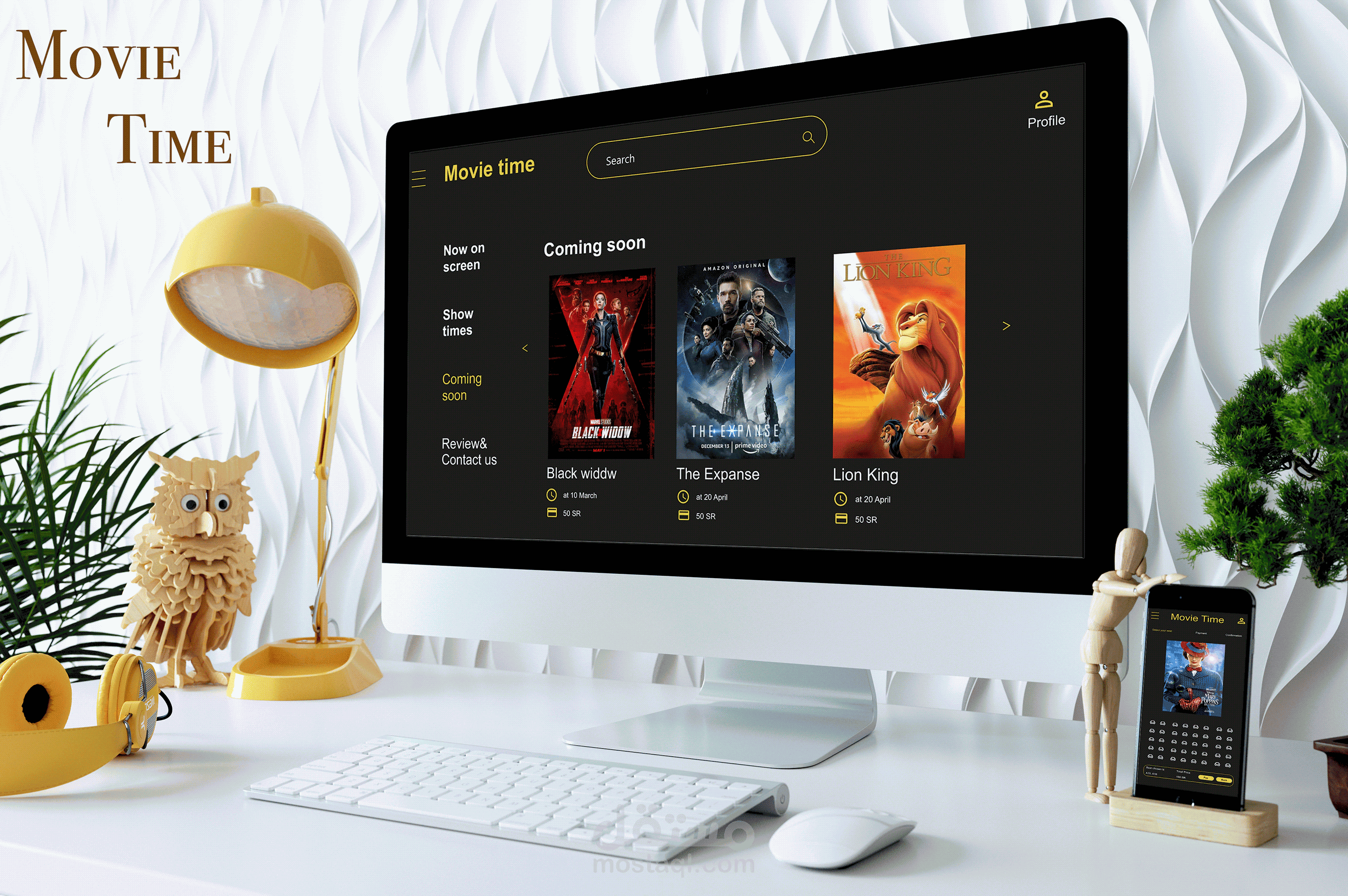 هوا واجه مستخدم لموقع و تطبيق موبايل لحجز الافلام و الافلام المتاحه وبعد التفاصيل عنها