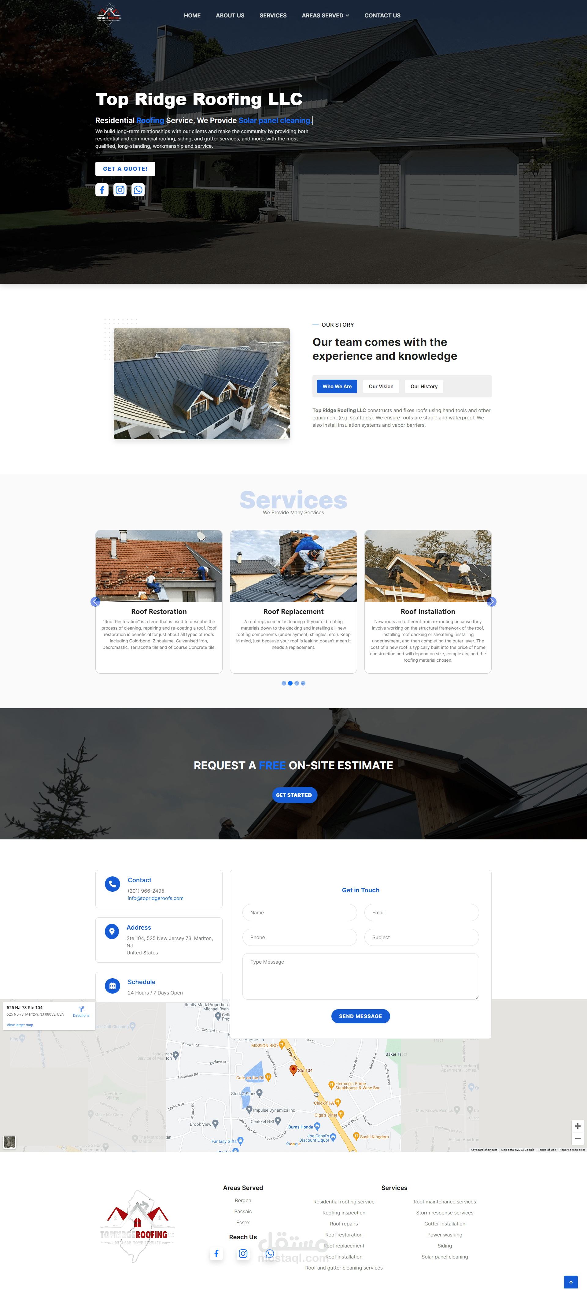 يمكن أن يتضمن الموقع معلومات مفصلة حول الشركة وخدماتها، مثل تركيب وإصلاح الأسقف، وتقديم خدمات الصيانة والتنظيف والتجديد. ومن الممكن أن يشمل الموقع أيضاً صورًا وفيديوهات توضح أعمال الشركة وجودة خدماتها.