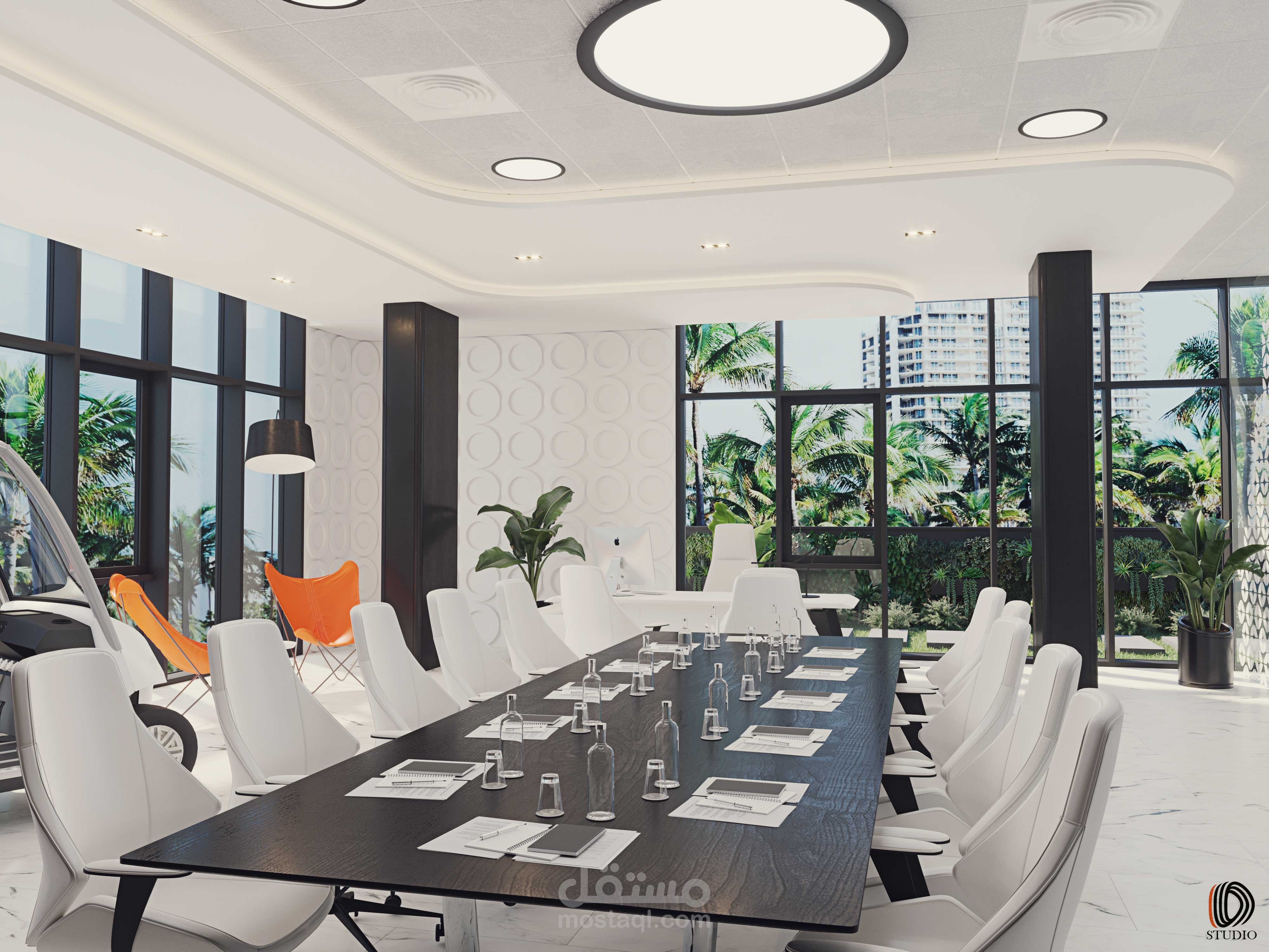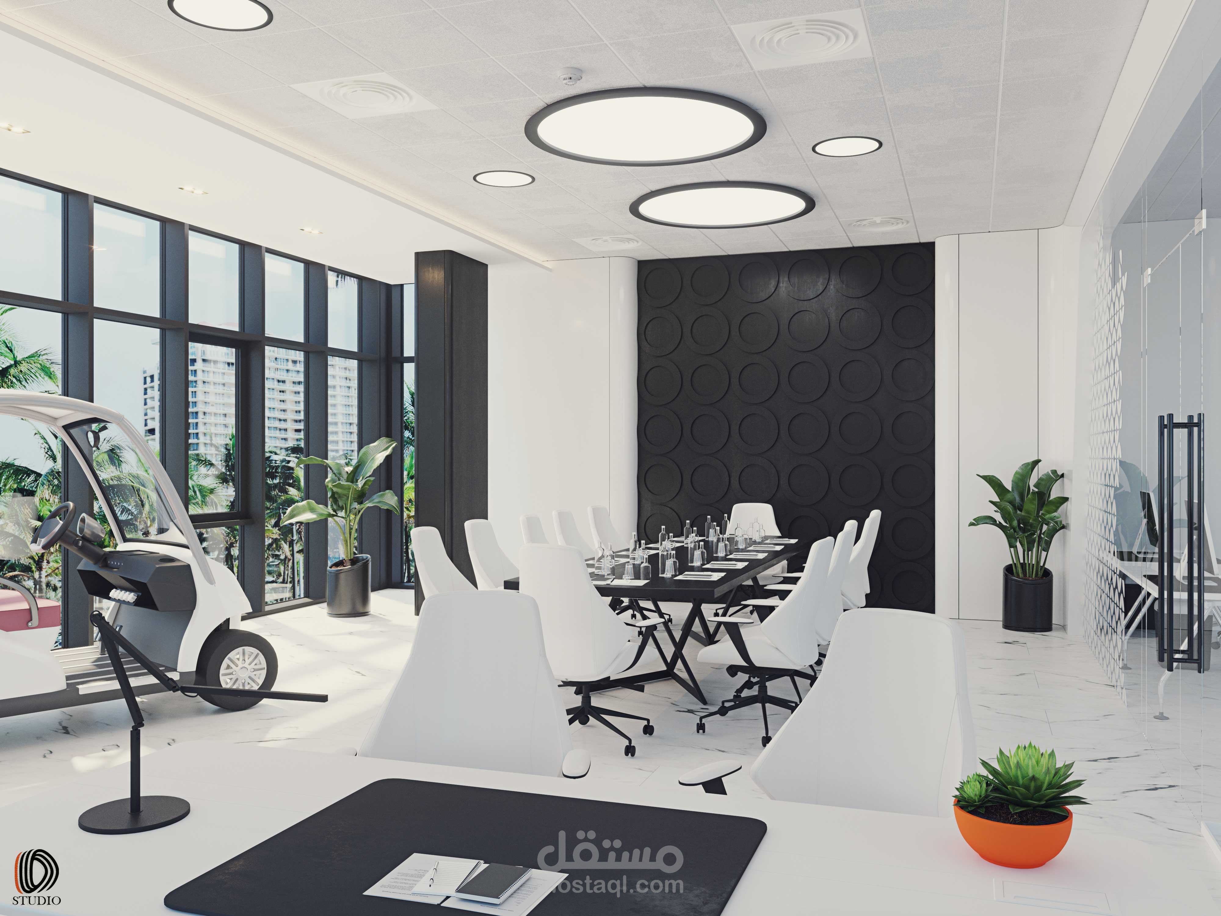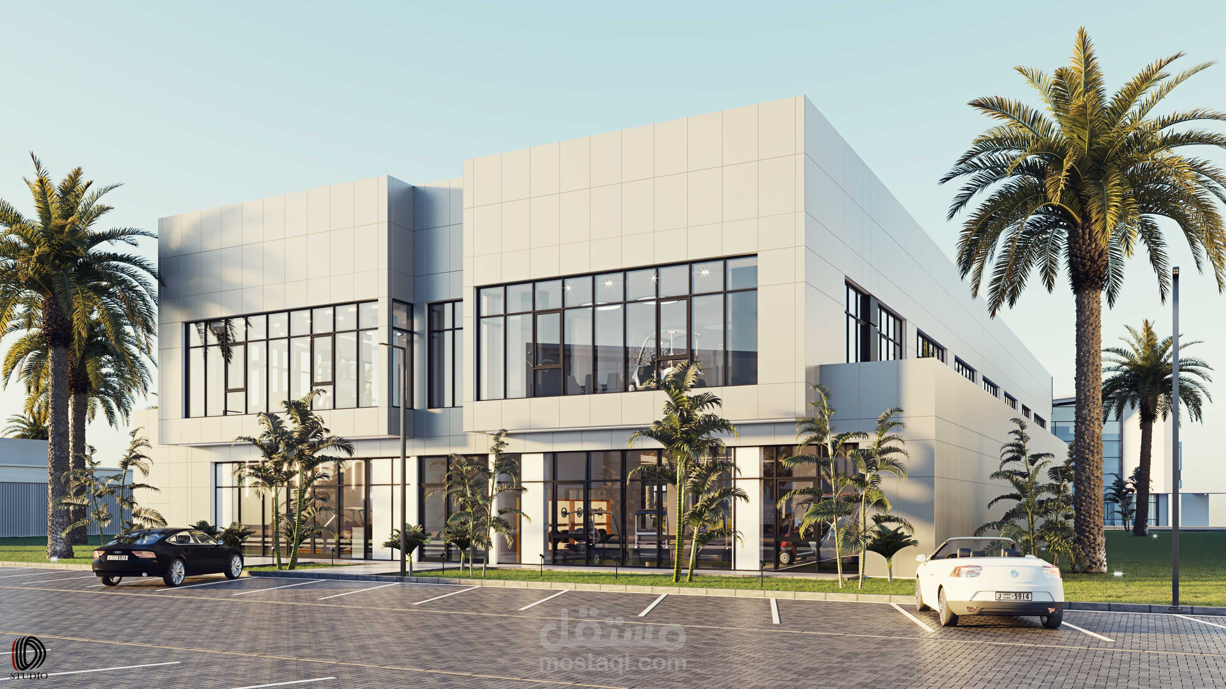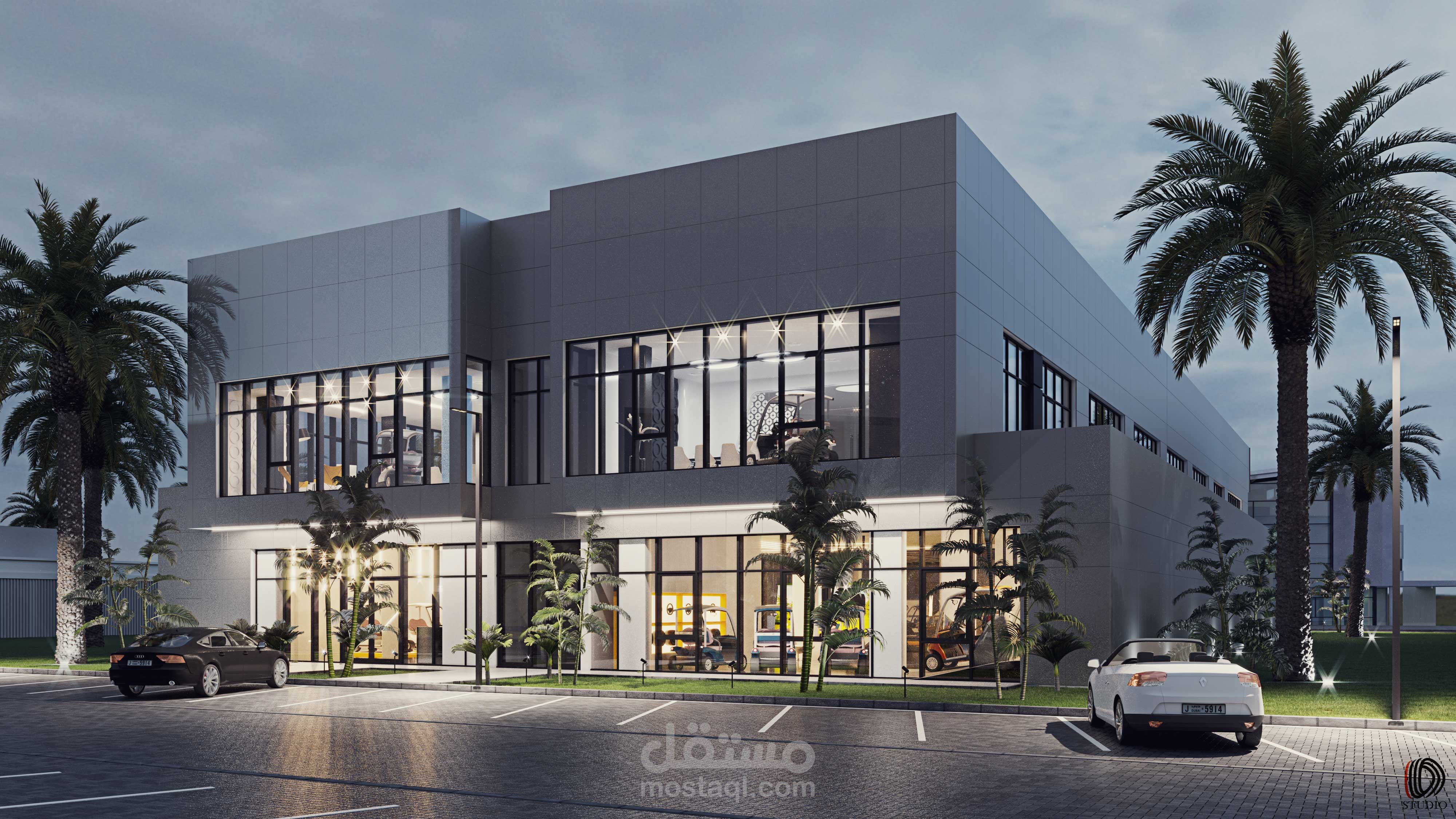 تصميم كامل للشوروم من خارجي، داخلي، وثريدي