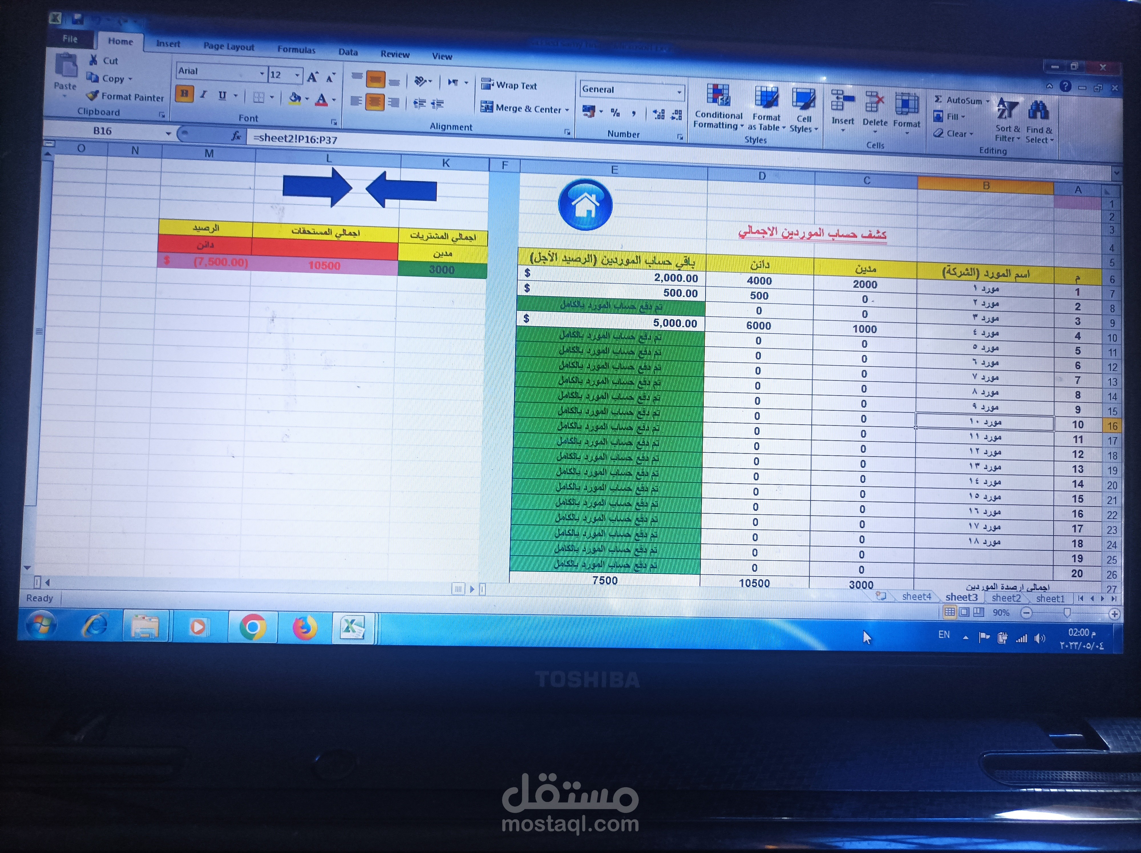 شيت لجميع الموردين (سداد فاتورة -مرتجع- دفعه من الحساب- اشعار خصم - باقي الحساب )