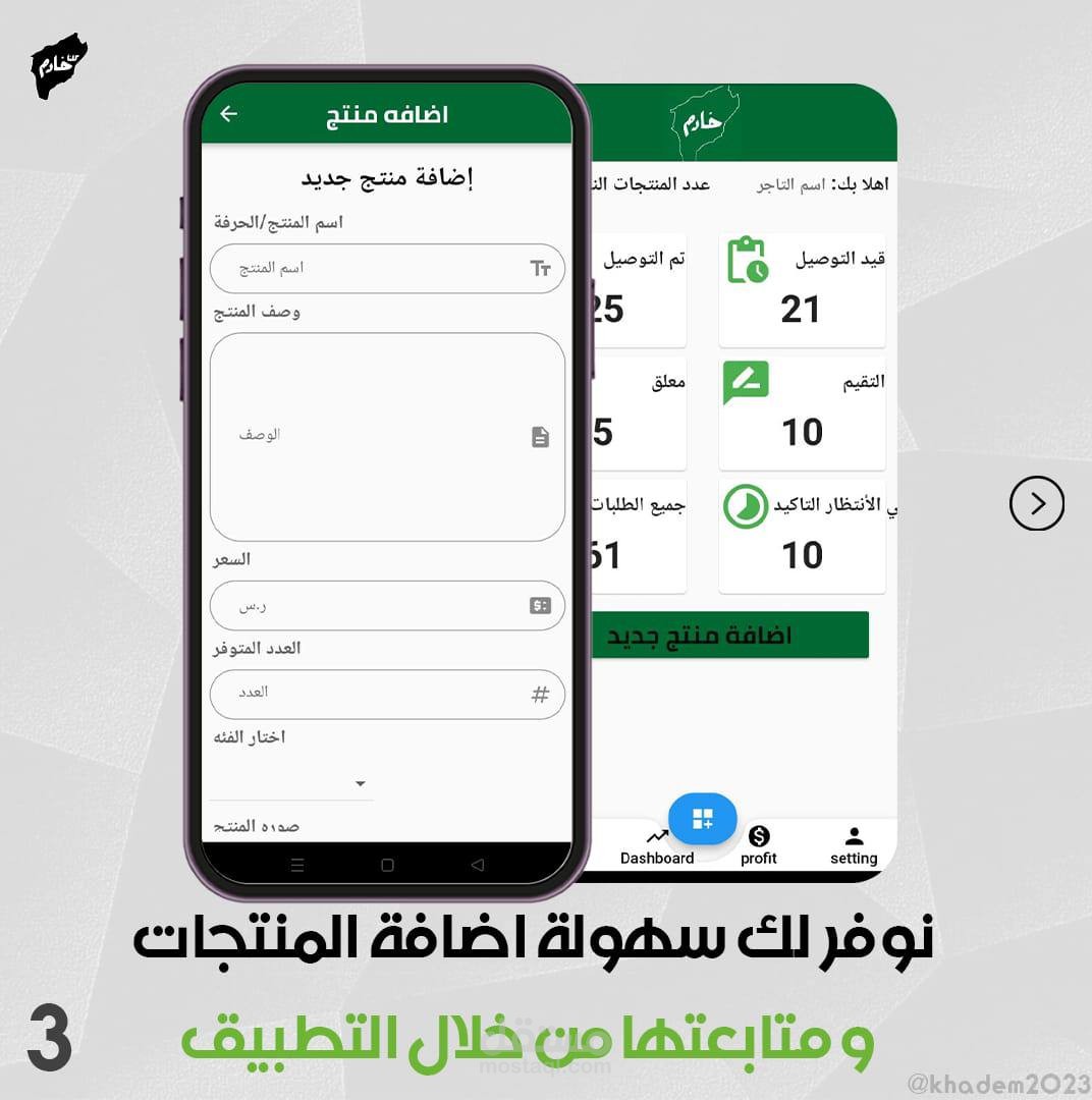 تطبيق كلنا خادم هو تطبيق العميل والتاجر متوفر علي متجر بلاي وAppStore