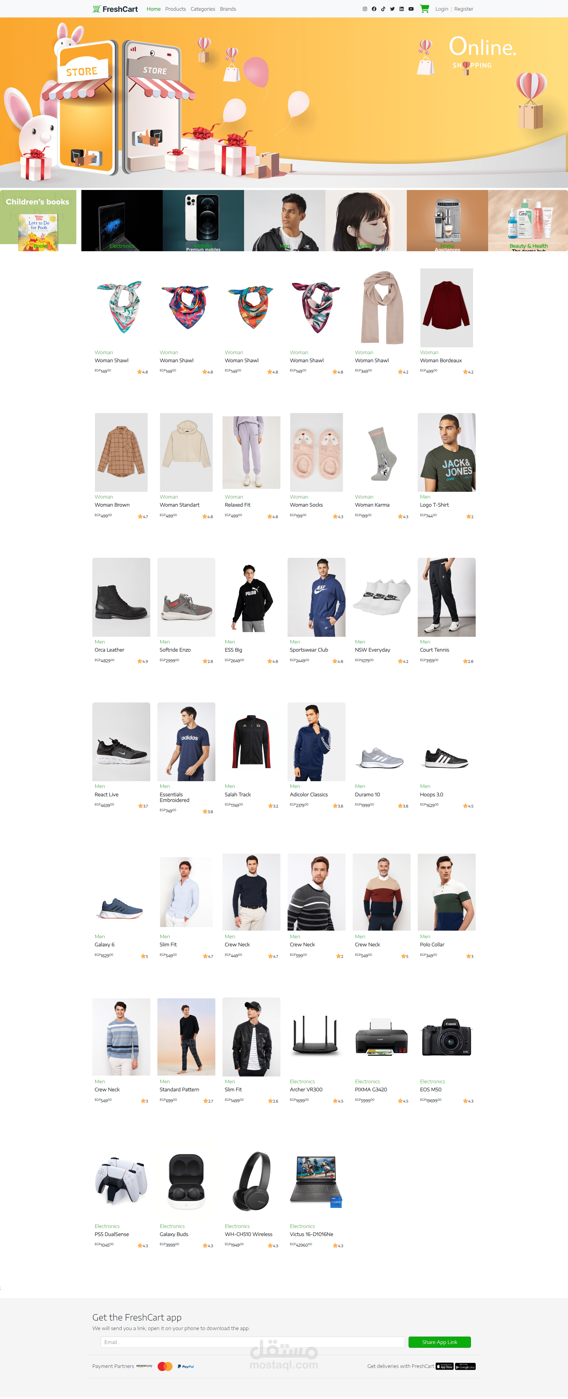 1. المشروع عبارة عن موقع ويب للتجارة الإلكترونية سريع الاستجابة يسمى FreshCart.