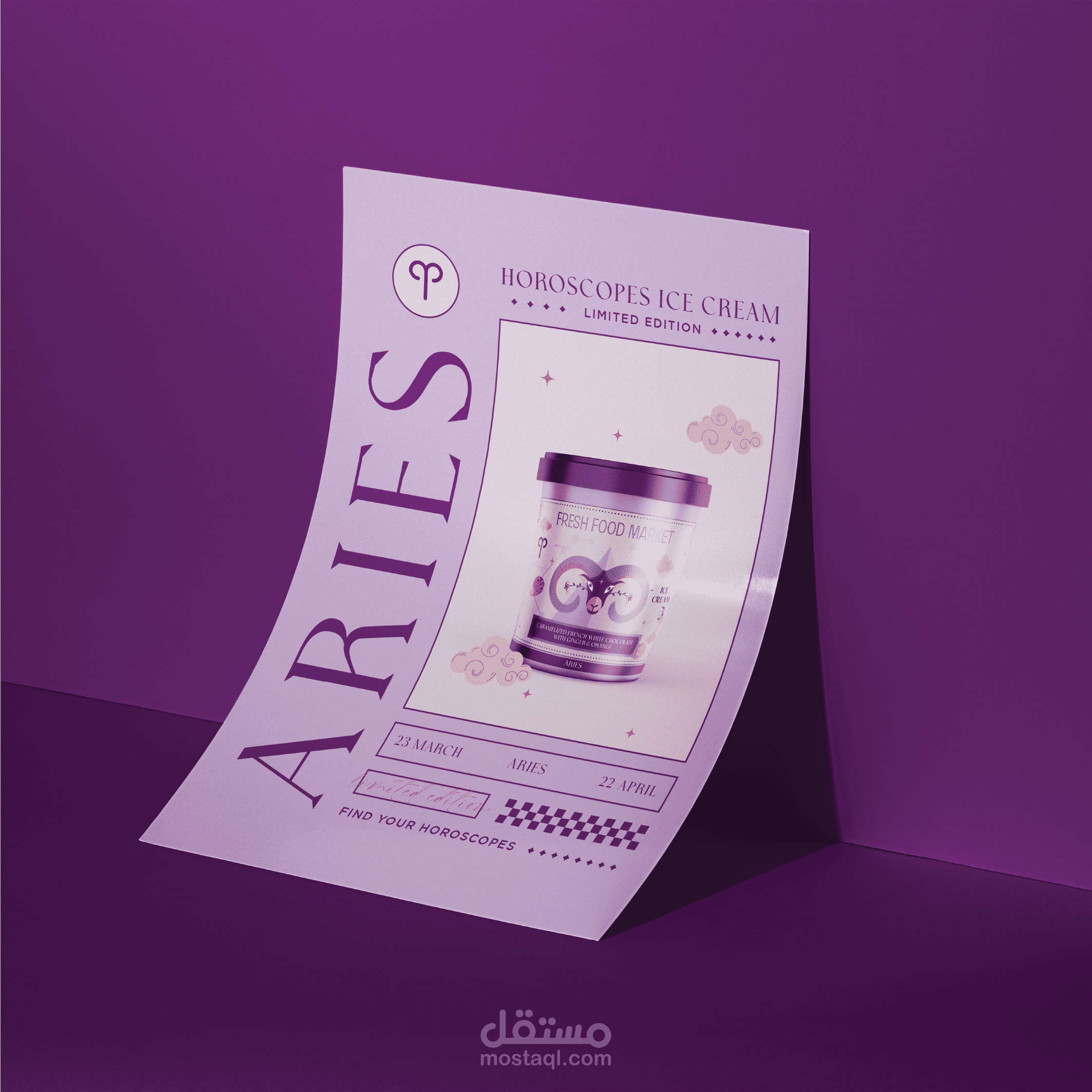 Ice cream packaging for an ice cream range based on the idea of the horoscopes I drew every illustration.