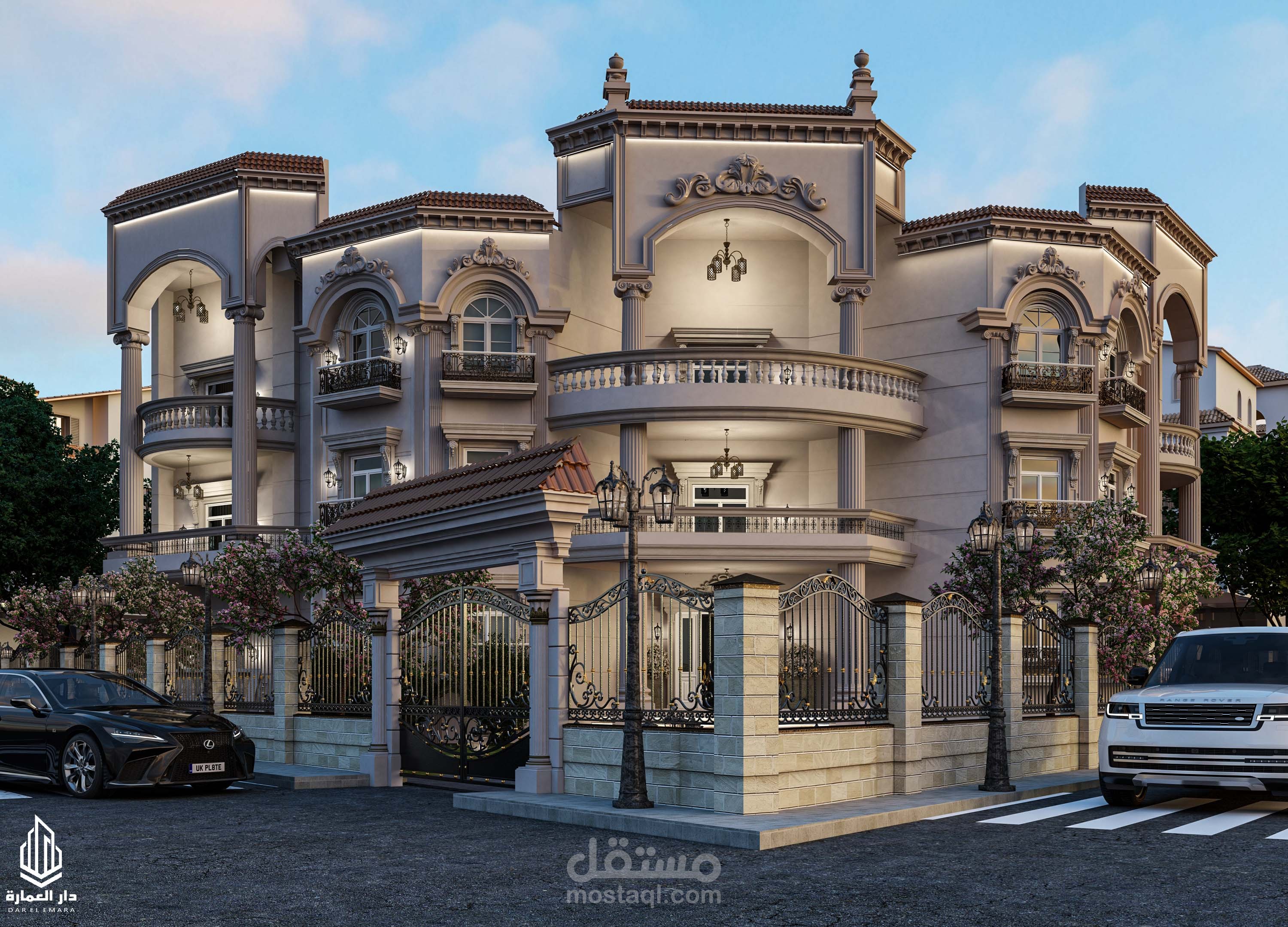 تصميم واجهة فيلا على طراز الكلاسيك في سوهاج الجديدة