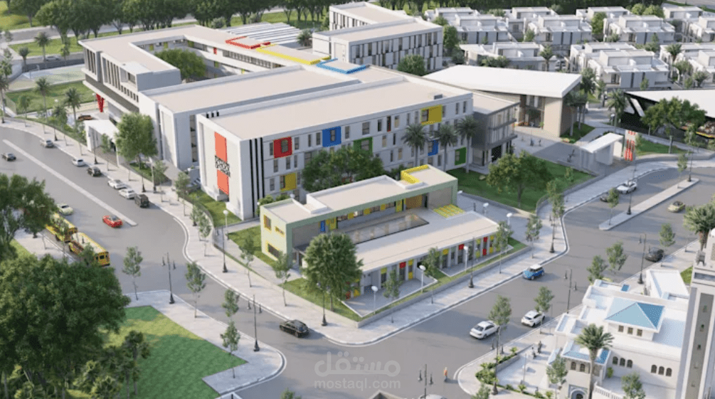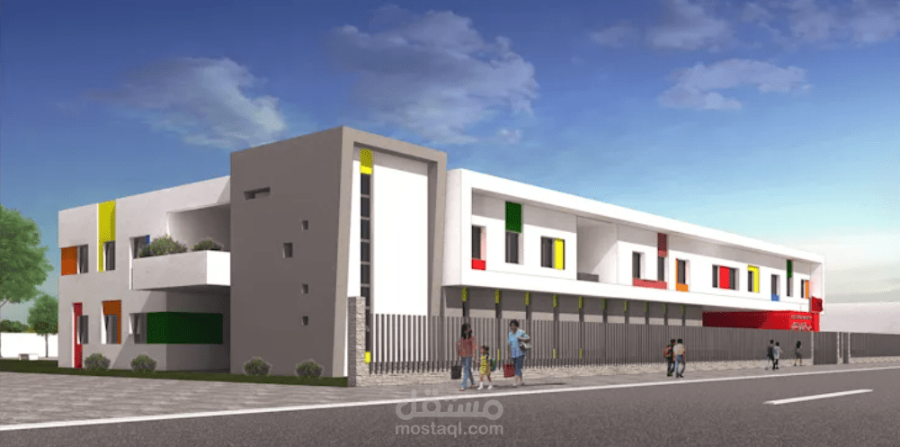 Minimalist and colourful school project with a urban and architectural dimension. Brough to you by our team of architects , interior and landscape designers.