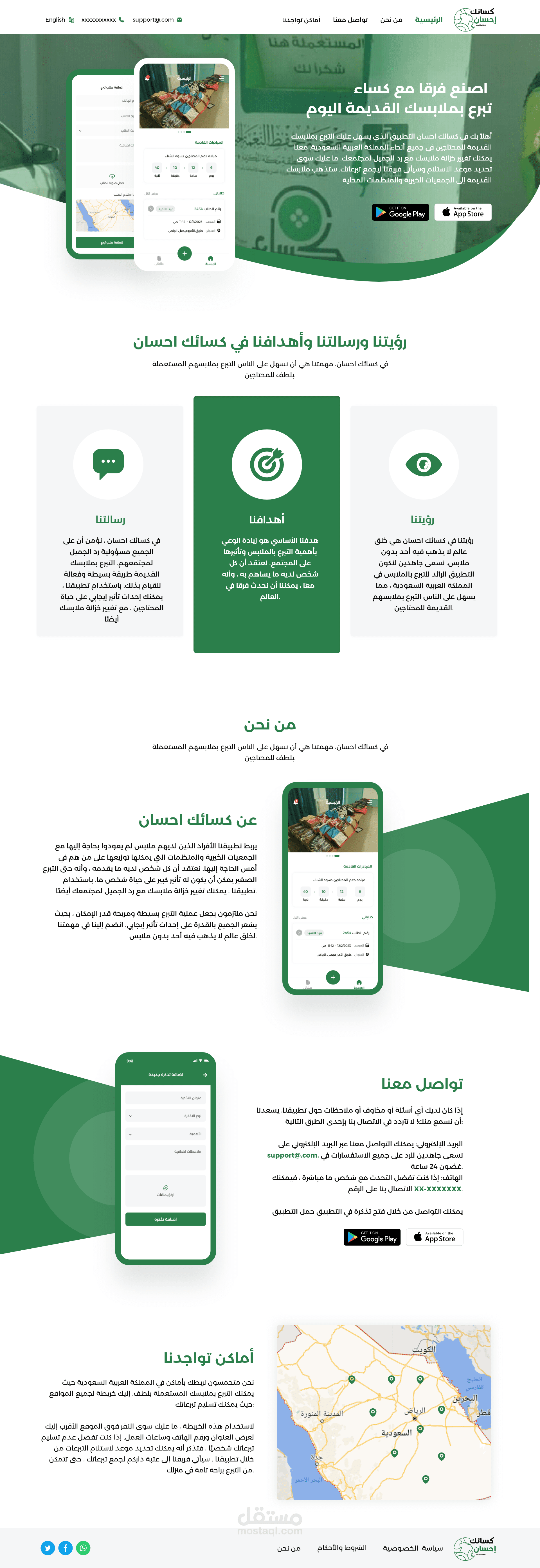 تصميم صفحة هبوط ترويجية لتطبيق موبايل، التصميم متوافق مع التصفح ومع تطبيقات الهاتف ايضاً