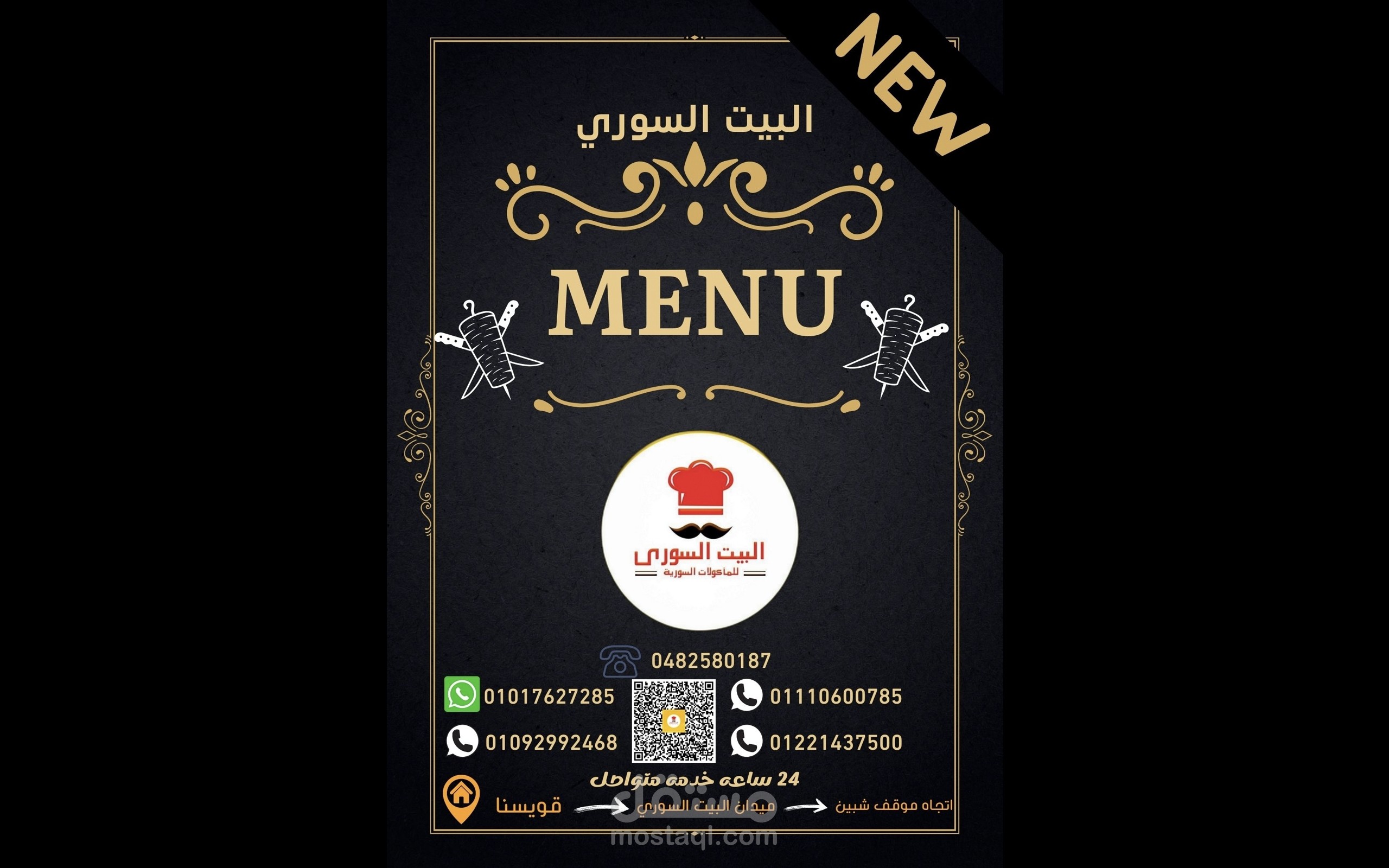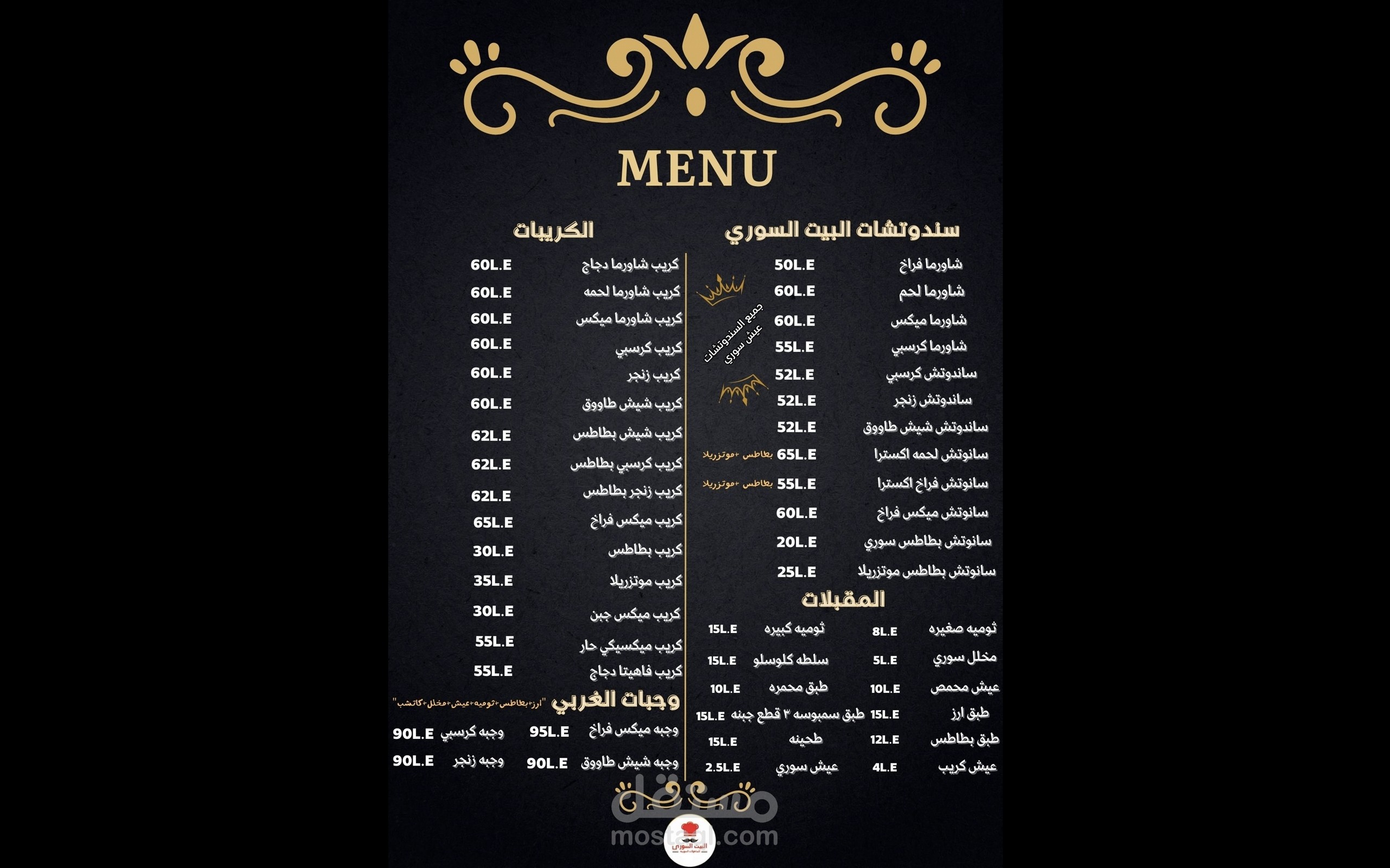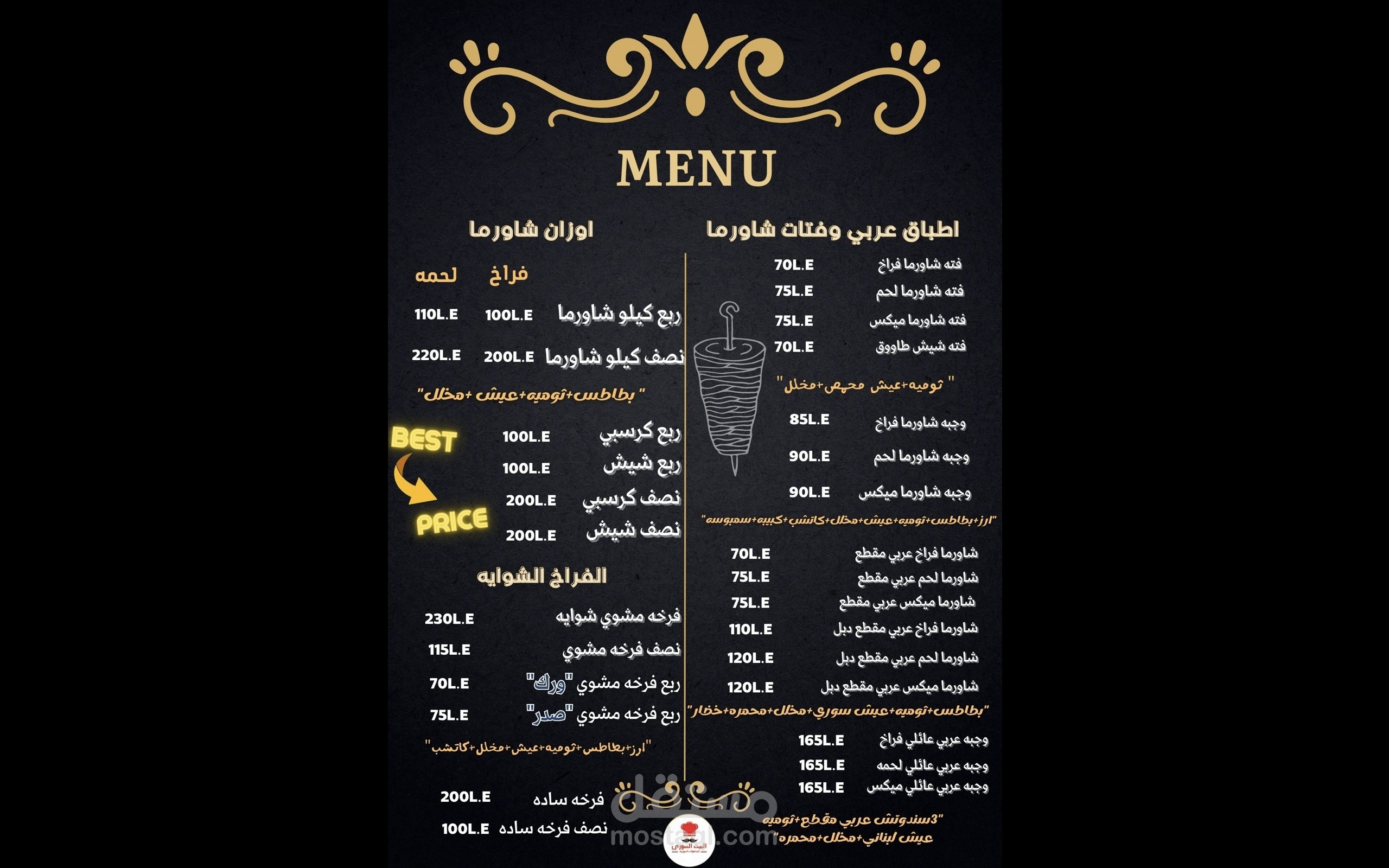 هذا المنيو يشرح هويه المطعم من خلال الشعار وتناسق الالوان