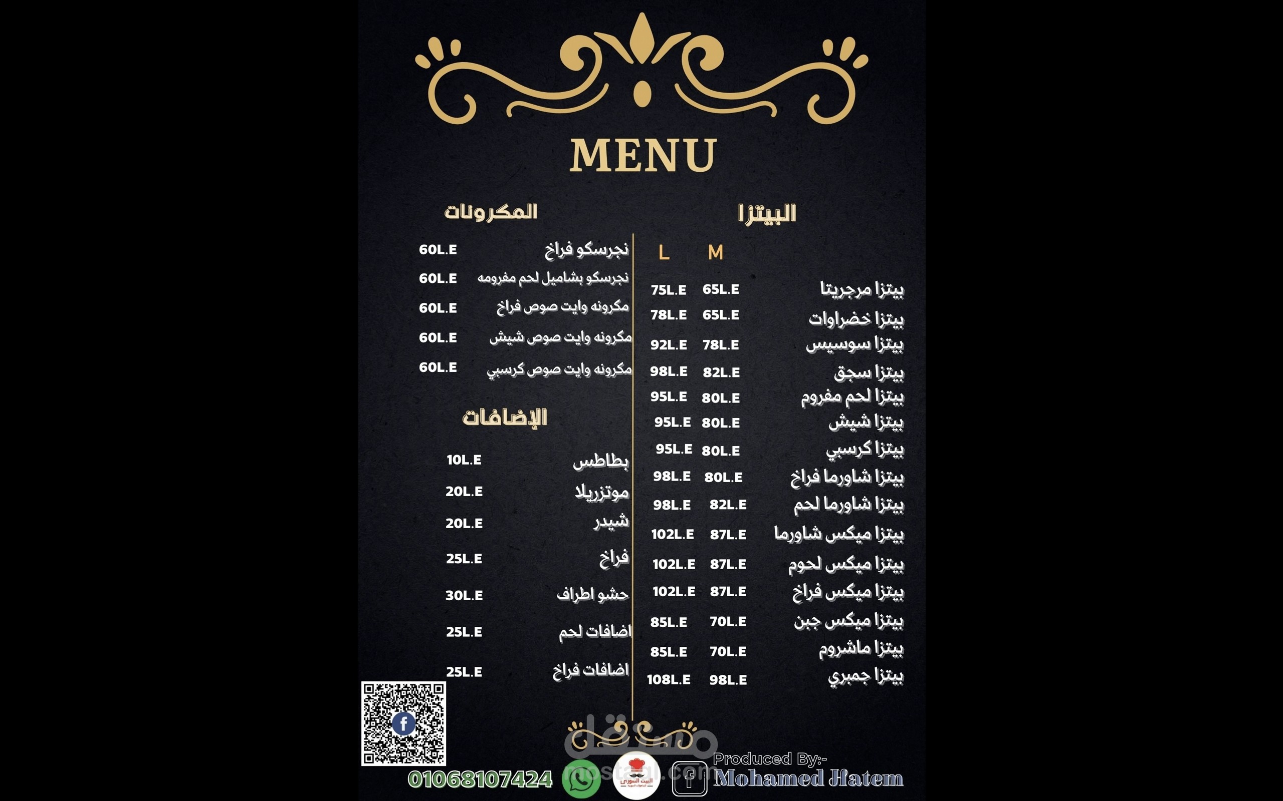 منيو مطعم مربوط ب QR code مع فيسبوك