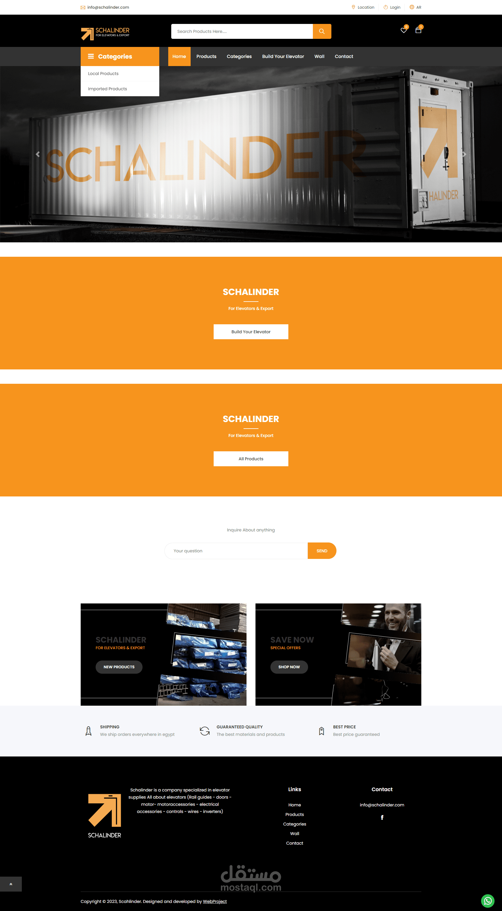 موقع بيع المنتجات وتسويقها لشركة لبيع مهمات المصاعد والاستيراد في مصر، تم تنفيذ الموقع باستخدام laravel من الصفر يعمل باللغتين - عربي وانجليزي.