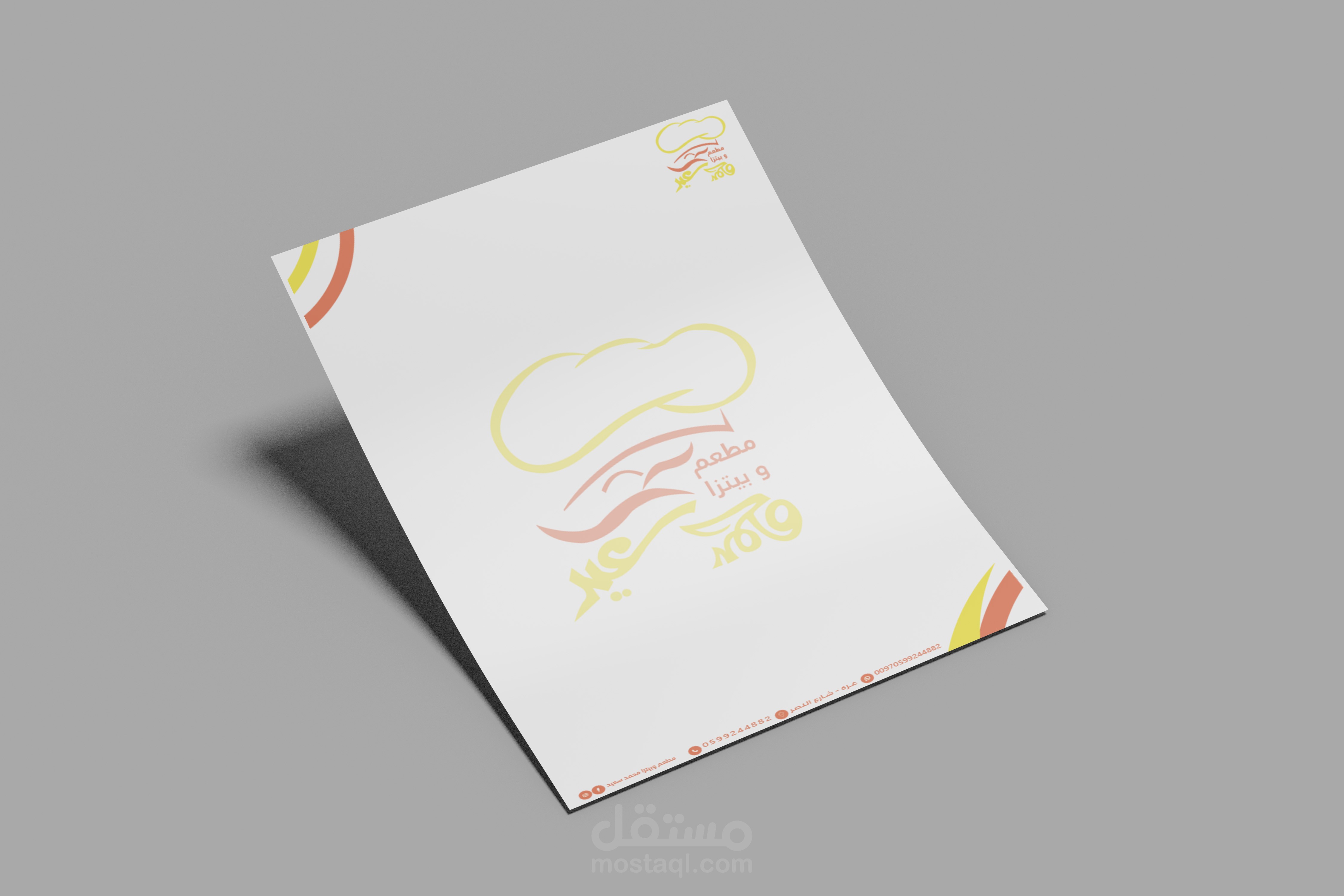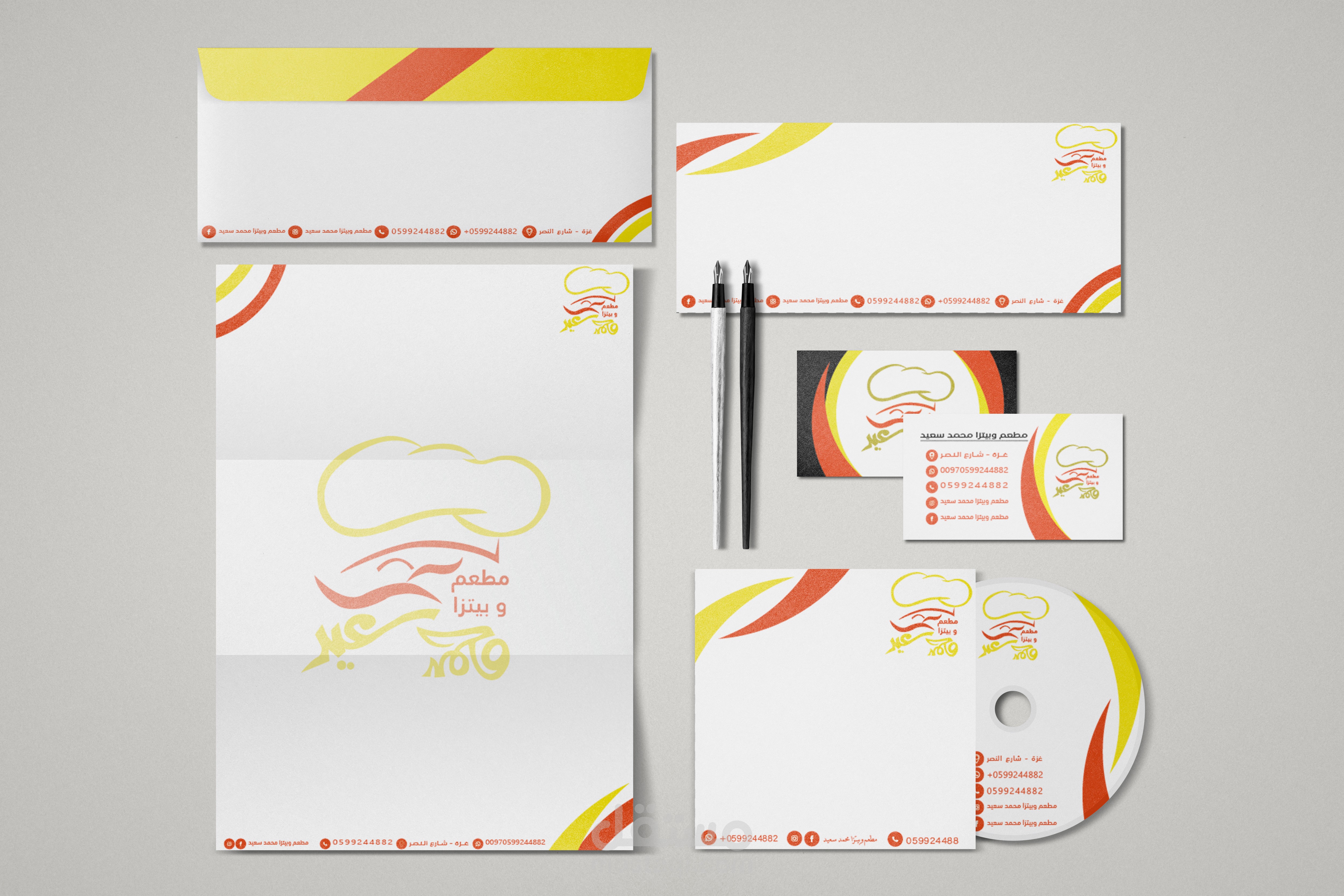 تصميم هوية بصرية صغيرة لمطعم يقدم البيتزا وبعض الملاكولات الغربية