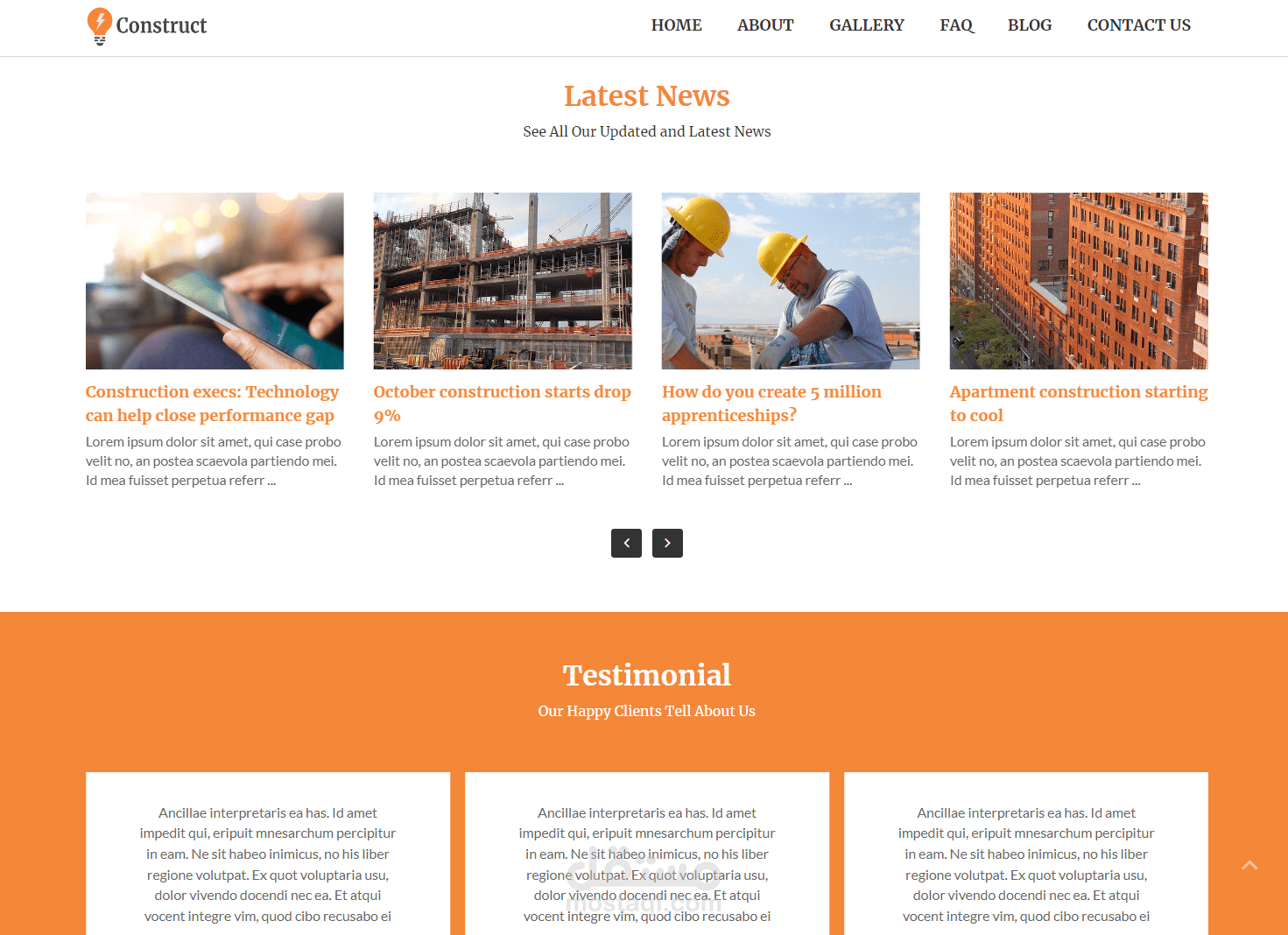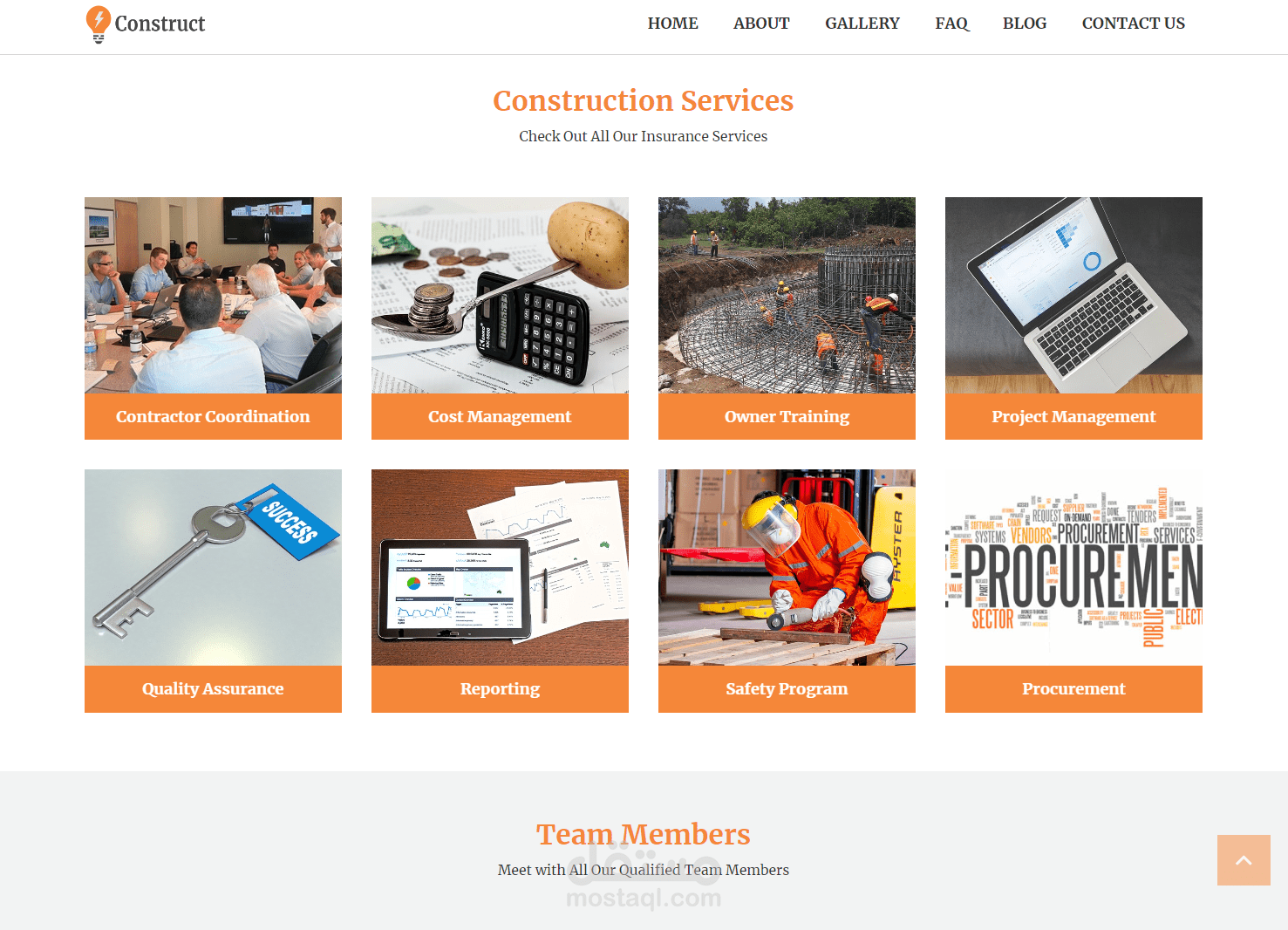 modern design for landing page for construction website in English using html, css, bootstrap, jquery, javascript