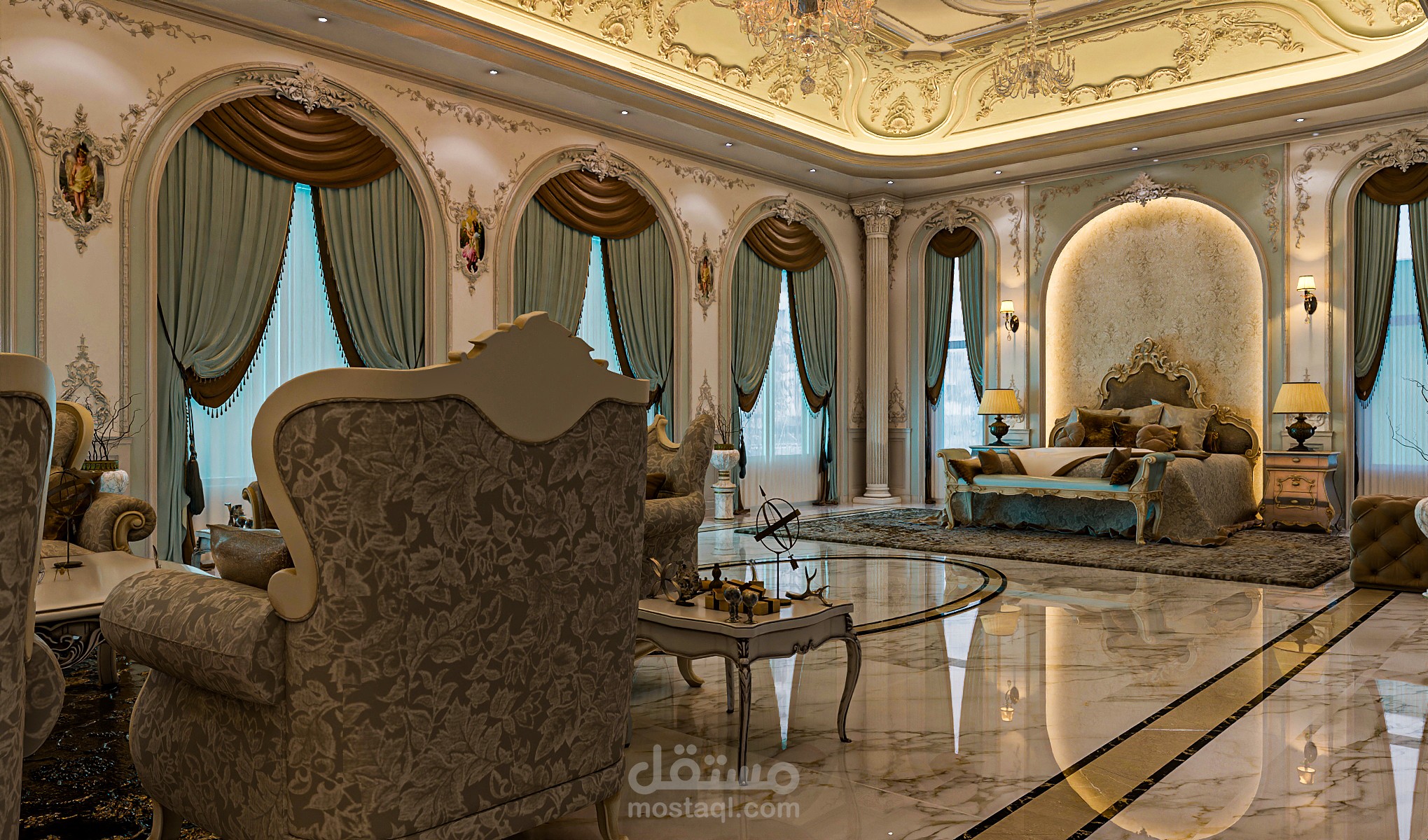 ذات طابع كلاسيكى بناءا على طلبات العميل ودراسه الفراغ المعتمد ويتم حاليا التنفيذ