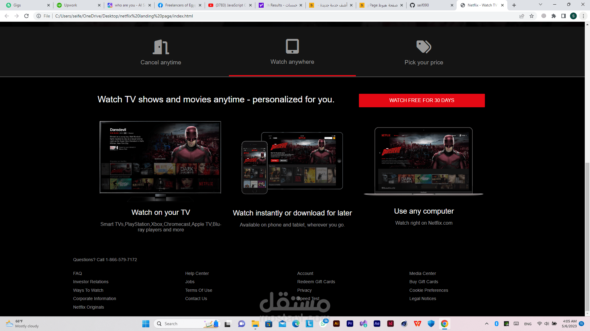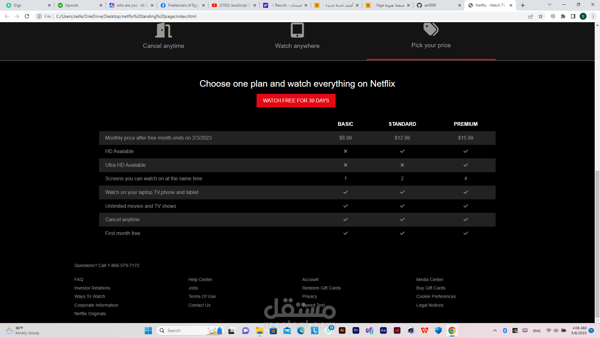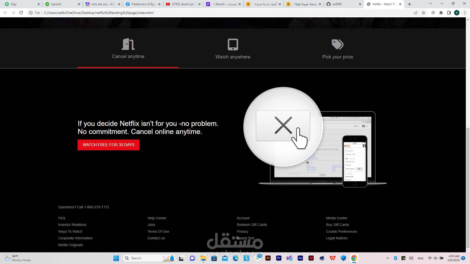 عملت علي بناء صفحة هبوط لموفع Netflix باستخدام اللغات و المكتبات التالية :