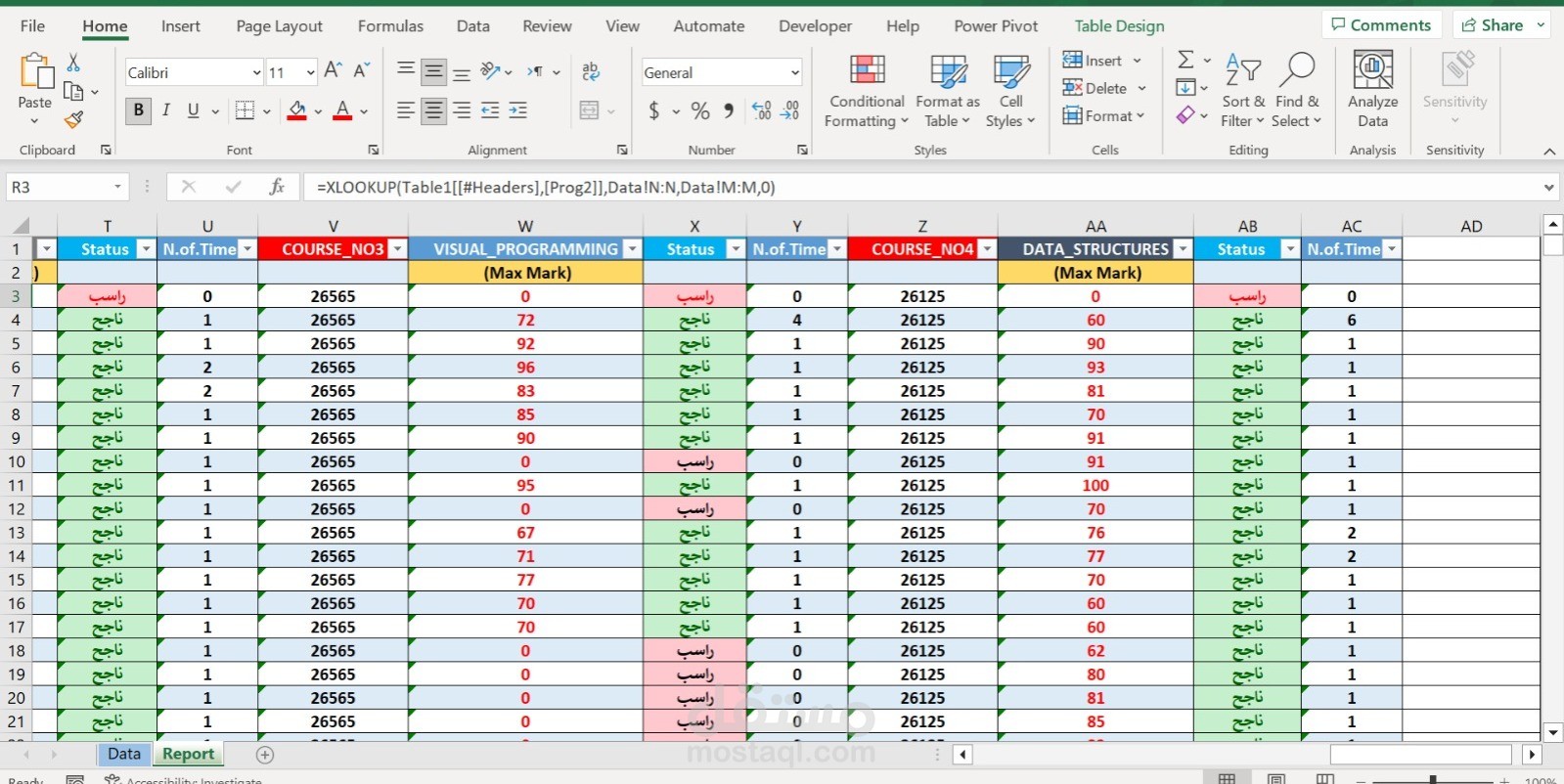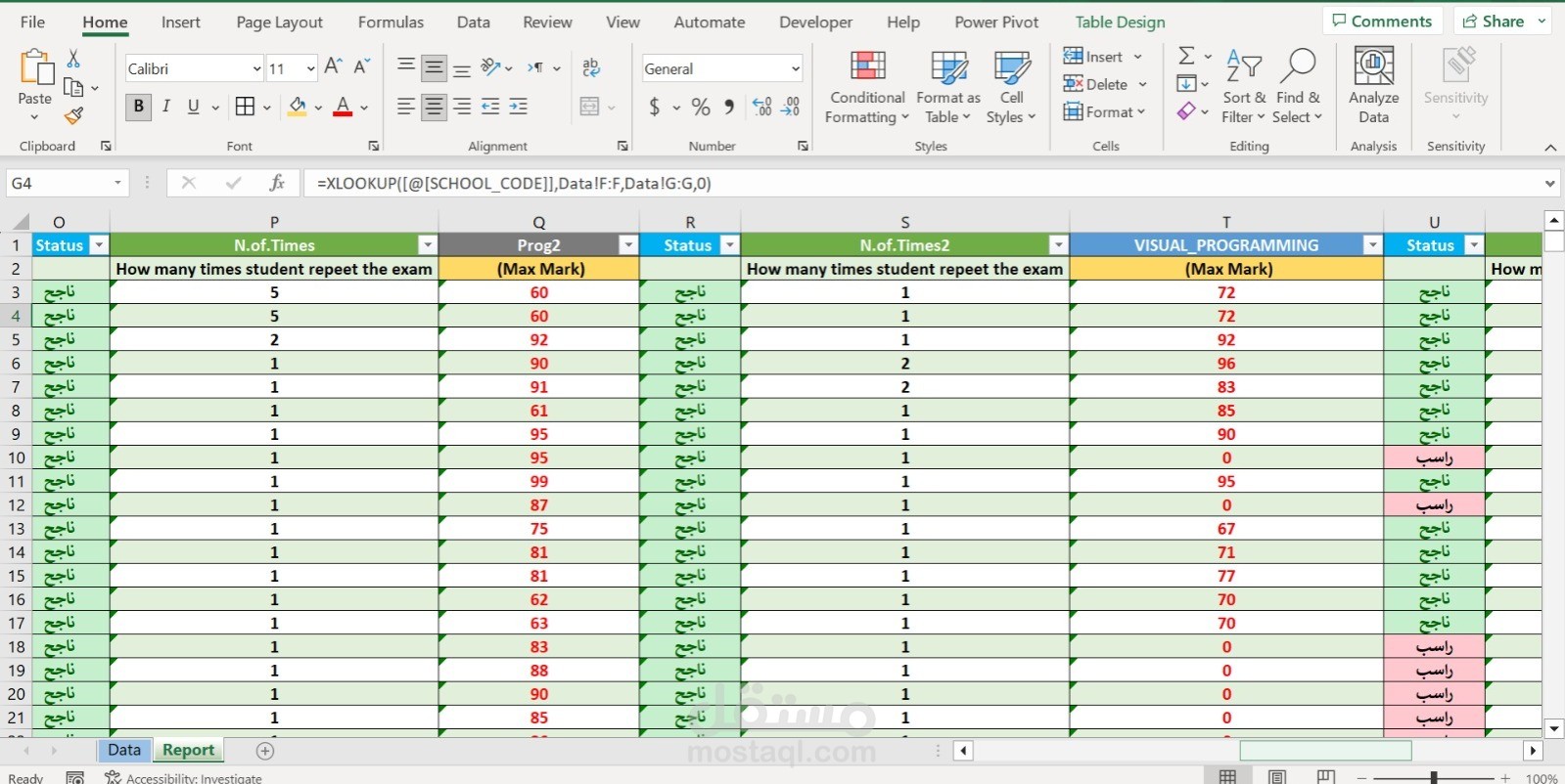 تم انشاء شيت اكسل خاص بمعلم تم اختبار عدد كبير من الطلاب لاكثر من مادة تعليمية وتم تسجيل الطلاب اكثر من 3 اختبارات للمادة الواحد وتم انشاء الاكسل بالتفاصيل التالية :