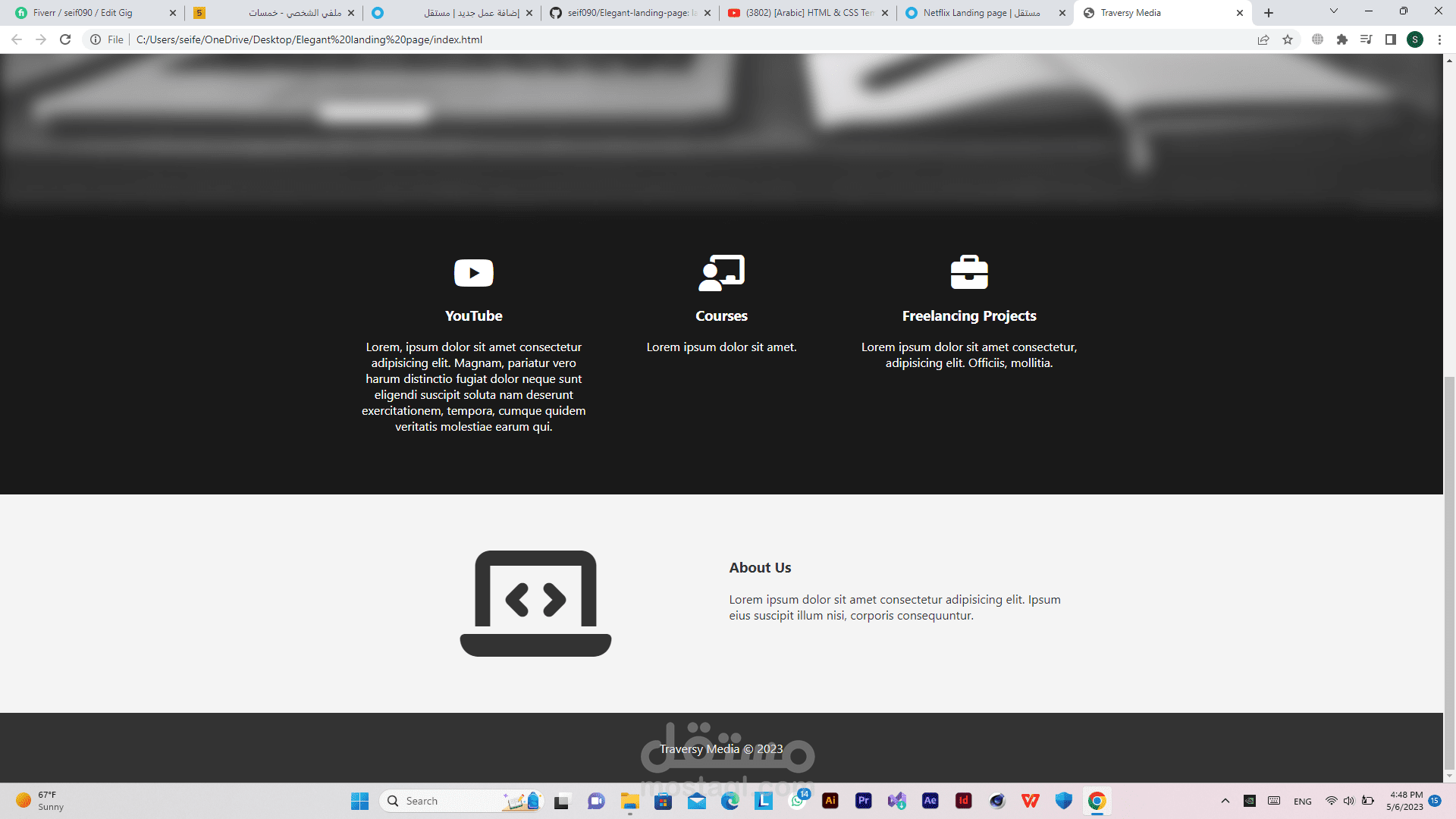 عملت علي بناء صفحة هبوط لموفع Elegant باستخدام اللغات و المكتبات التالية :