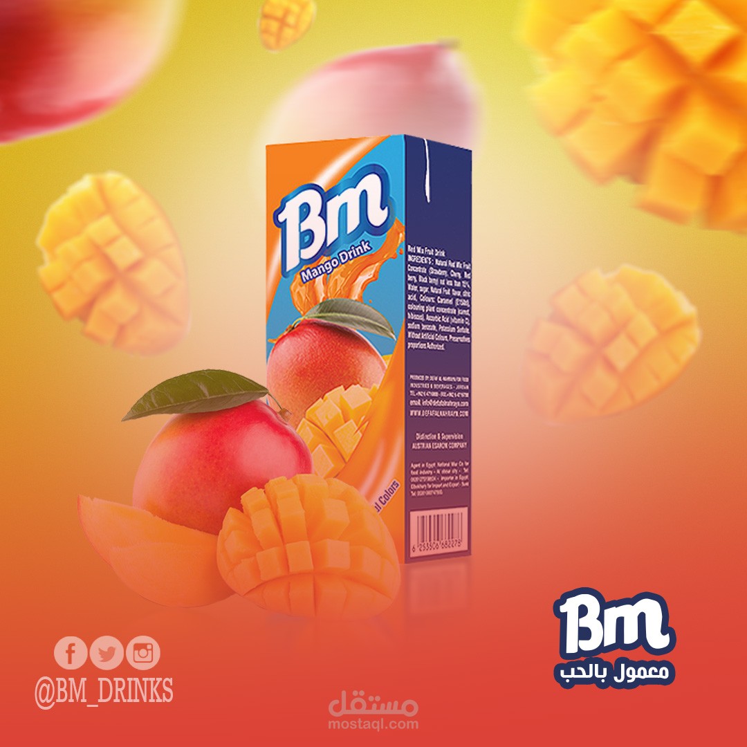 تم التصميم علي برنامج اليستراتور وفوتوشوب لشركة وهمية تسمي BM للعصائر