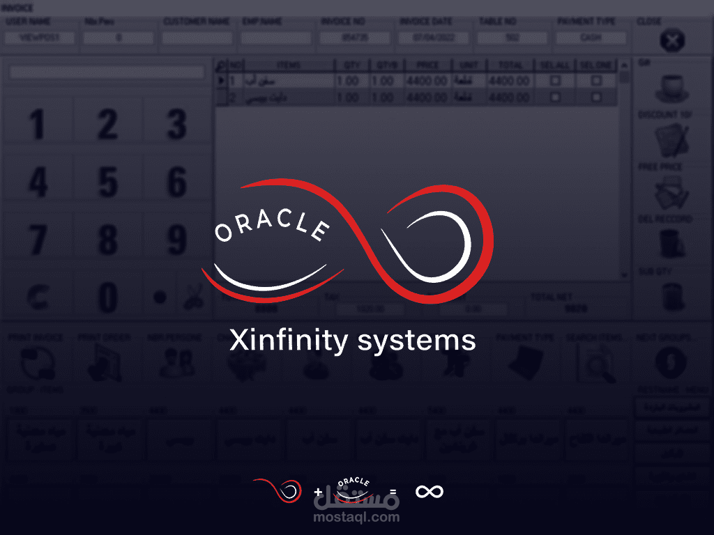 تصميم لوغو يحمل اسم Xinfinity System لشركة برمجية تعتمد نظام oracle
