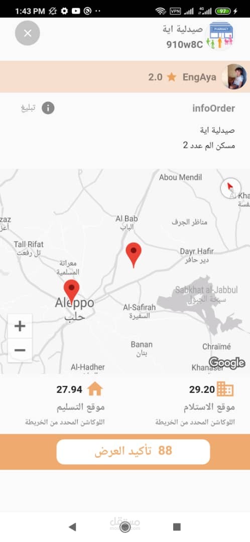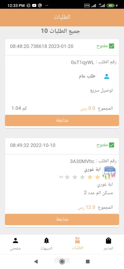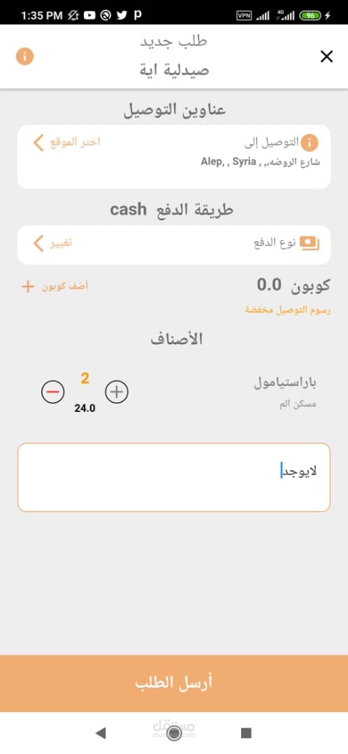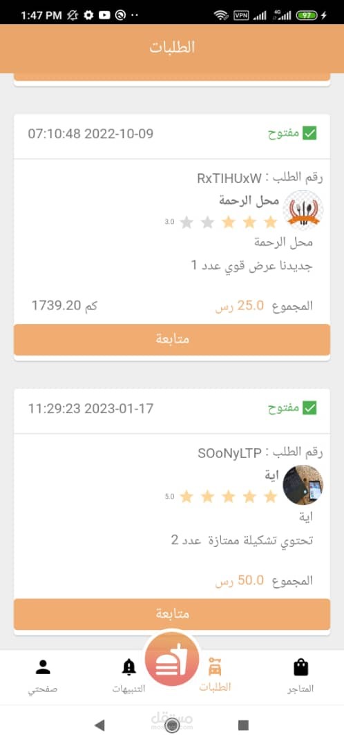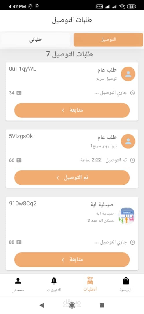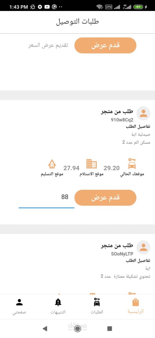 تطبيق flutter لتوصيل الطلبات متكامل زي تطبيق مرسول