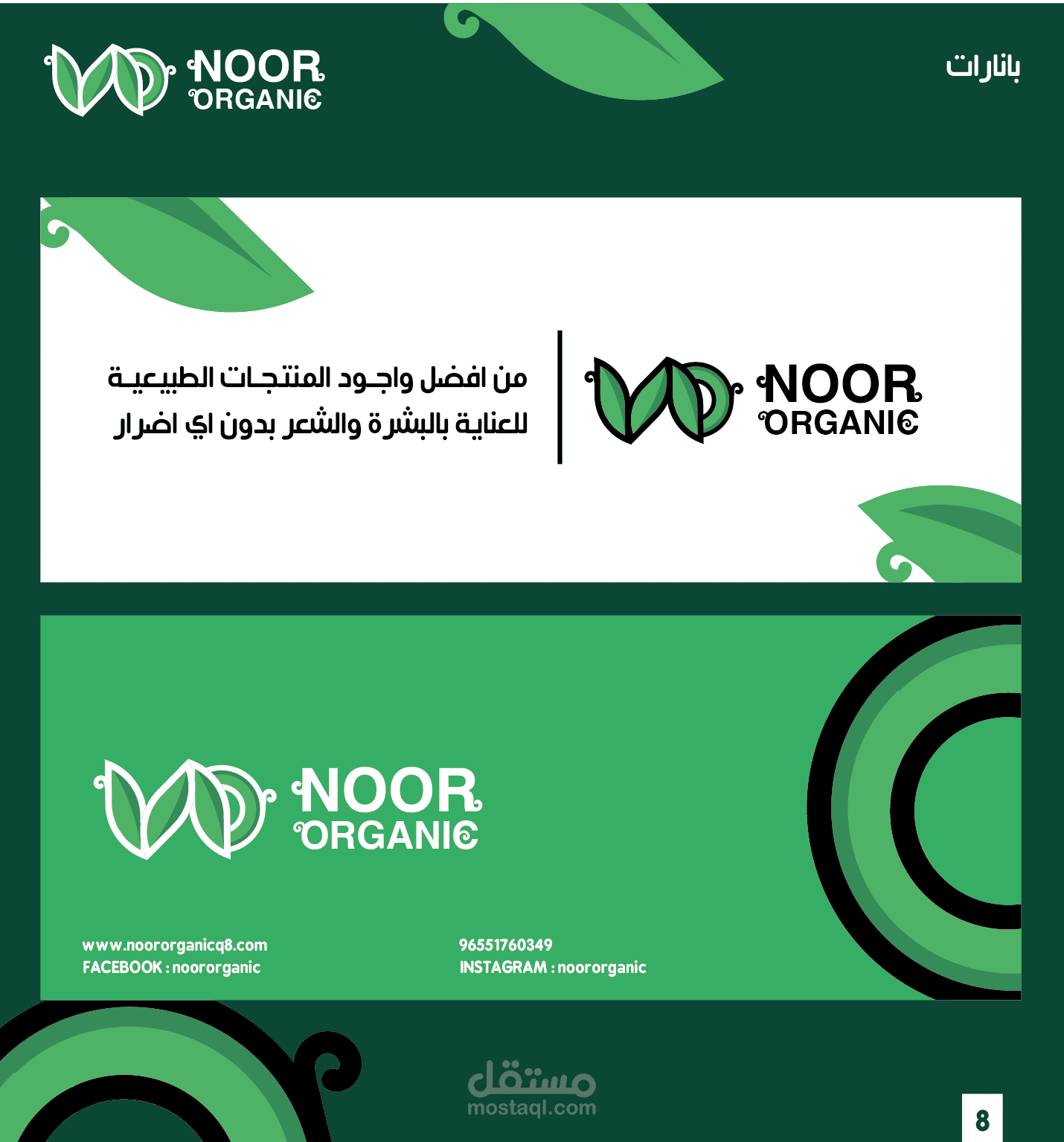 لوجو وهوية بصرية كاملة لموقع لبيع منتجات التجميل الطبيعية والعناية بالبشرة.