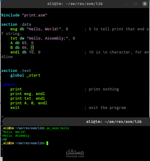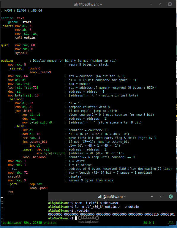 برنامج بلغة الاسمبلي معالج x86 - 64 bits خاص بانظمة لينكس