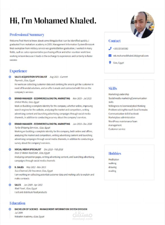 تم عمل ال CV بشكل كلاسيكي رائع و متاح التعديل و يمكنك اختيار نموذج و يتم عمل مثله