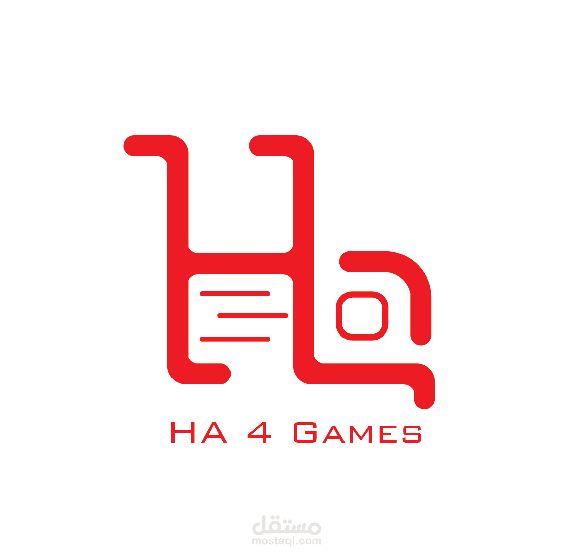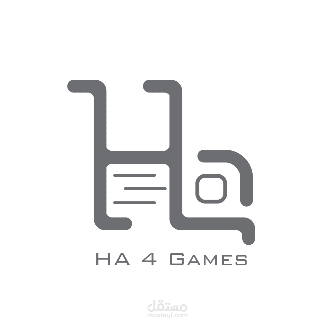 شعار لشركه خاصه بالعاب الفديو اسمها HA تم استخدام الحروف ودلاله على نشاط الشركه فى تصميم الشعار