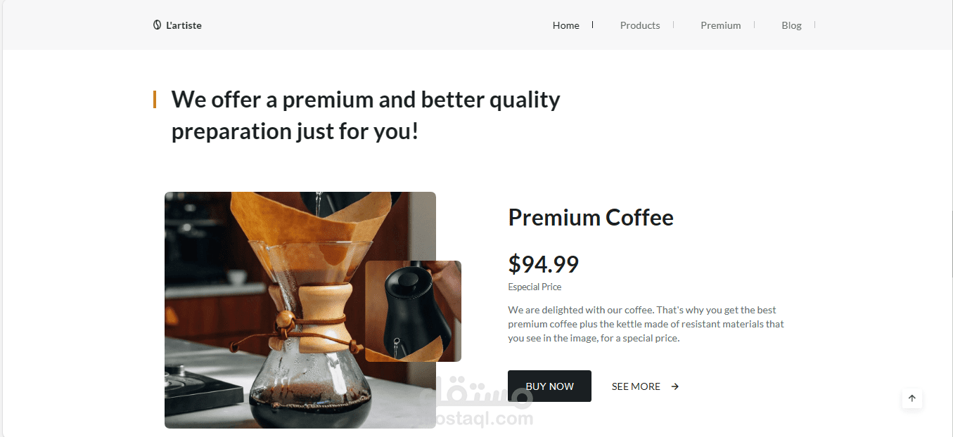 تتمثل فكرة المشروع في تصميم وتطوير موقع ويب يعرض خدمات وموارد شركة تصنع القهوة، بالإضافة إلى عرض أسعار المنتجات المختلفة التي تقدمها الشركة. الهدف الرئيسي من الموقع هو الترويج للمنتجات والخدمات وجذب العملاء المحتملين للتعرف على المزايا التي تقدمها الشركة.