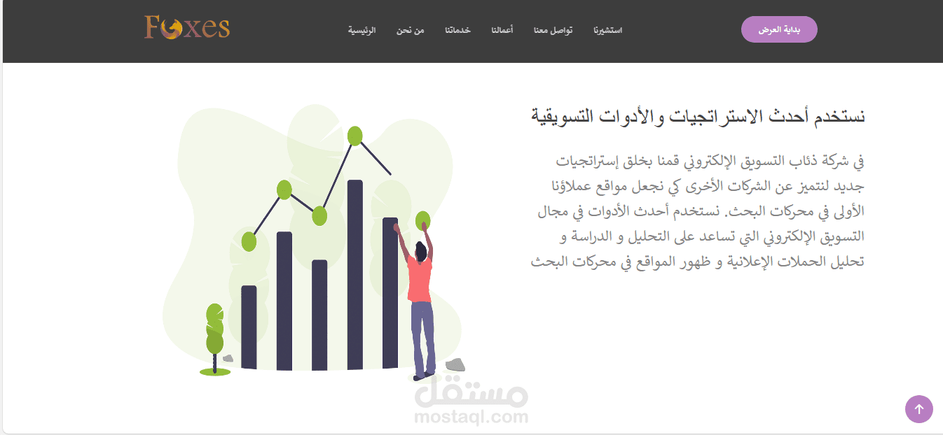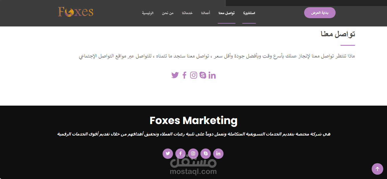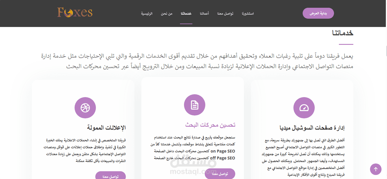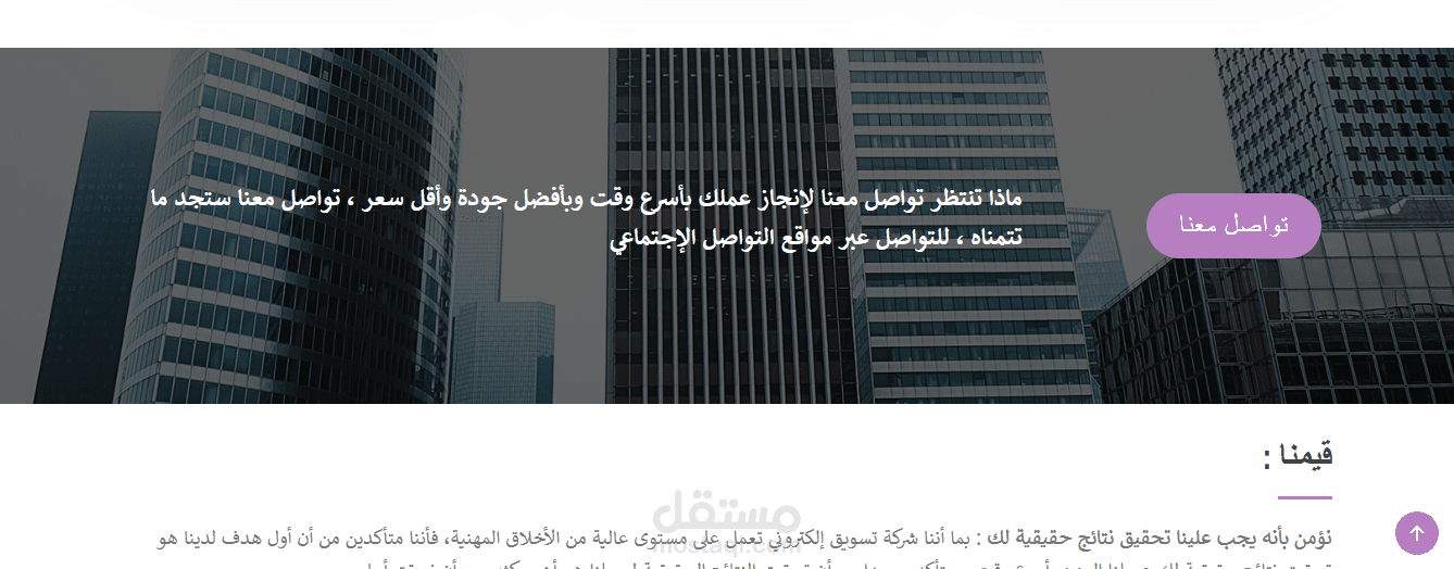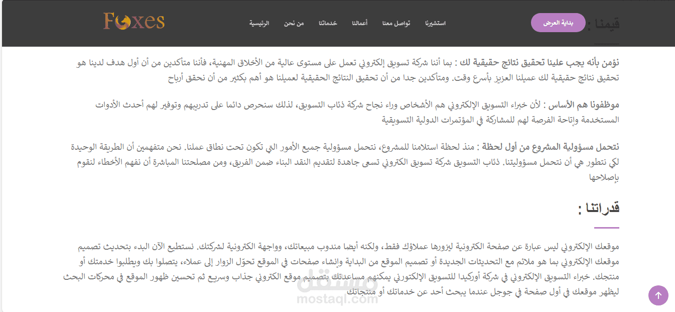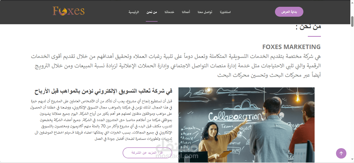 يتمثل المشروع في تصميم وتطوير موقع ويب لشركة تسويق وإعلانات، حيث يتم عرض أعمال الشركة وتسليط الضوء على الخدمات التي تقدمها. يهدف الموقع إلى جذب العملاء المحتملين وتعزيز التواصل مع الشركة لطلب الخدمات والاستفسارات.