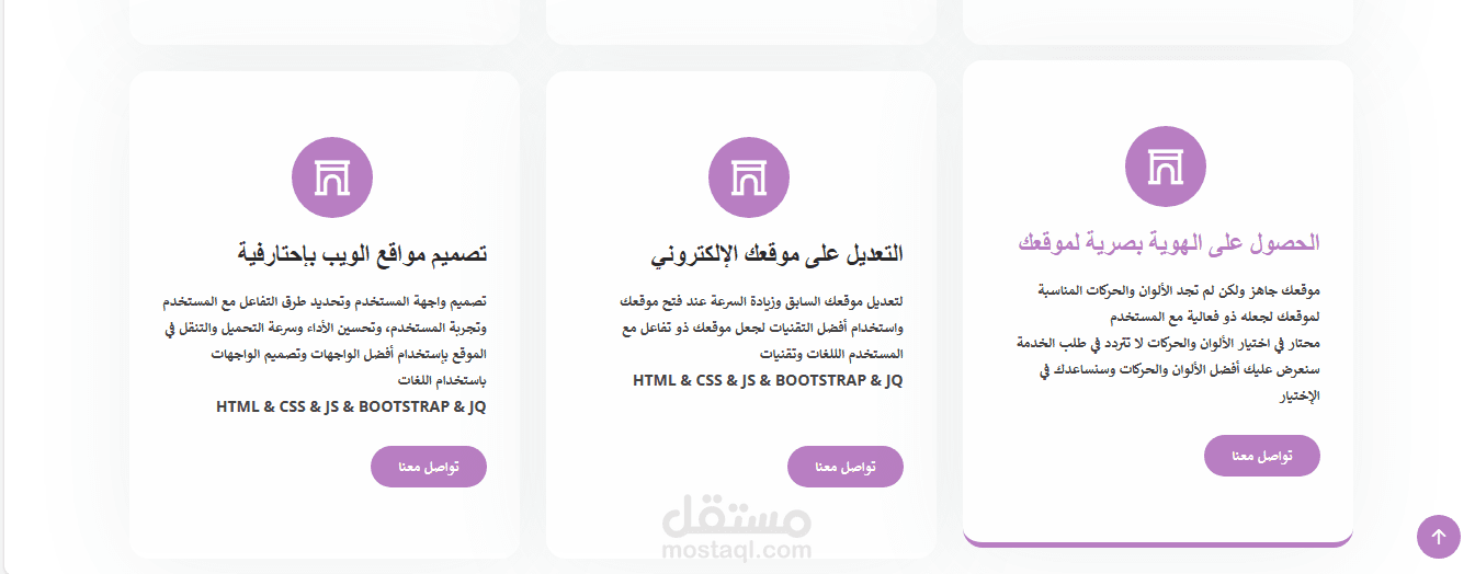 يتم توفير واجهة بسيطة وسهلة الاستخدام للمستخدمين لطلب الخدمات والتواصل مع الشركة. يتم تضمين نماذج اتصال أو أرقام هواتف أو وسائل أخرى للتواصل السريع والمباشر.