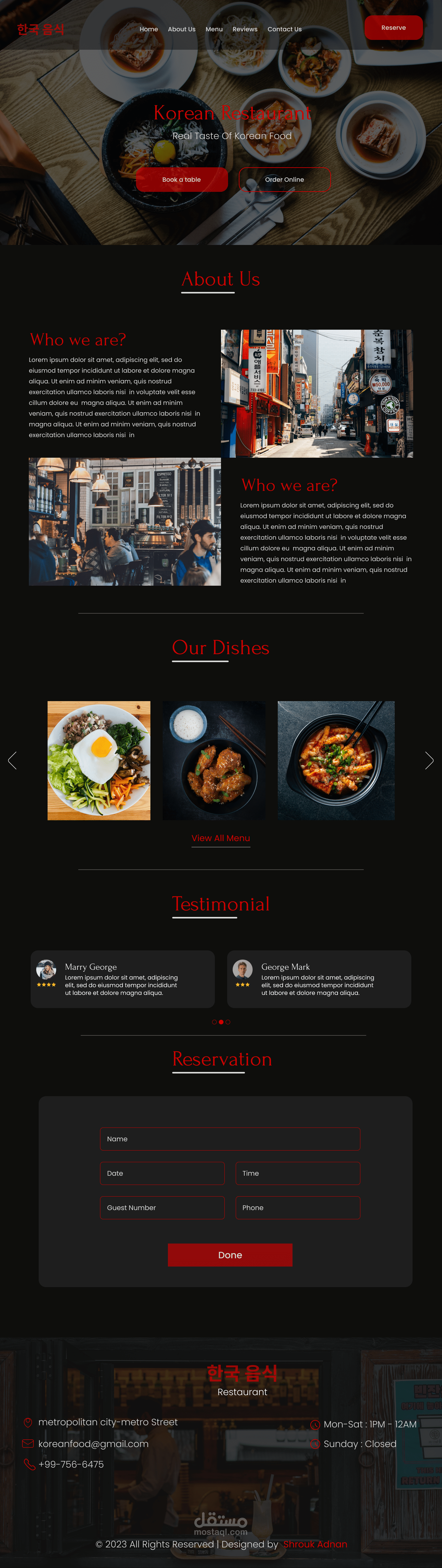 Web Page Design for Restaurant