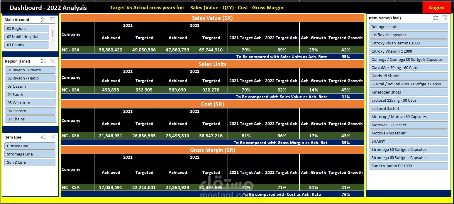 انشاء Dashboard قابلة للتعديل بمجموعة من الخيارات المطلوبة من مستخدمي التقرير لمتابعة نتايج النشاط و اهم ال KPI's المطلوبة و المحددة من الادارة.