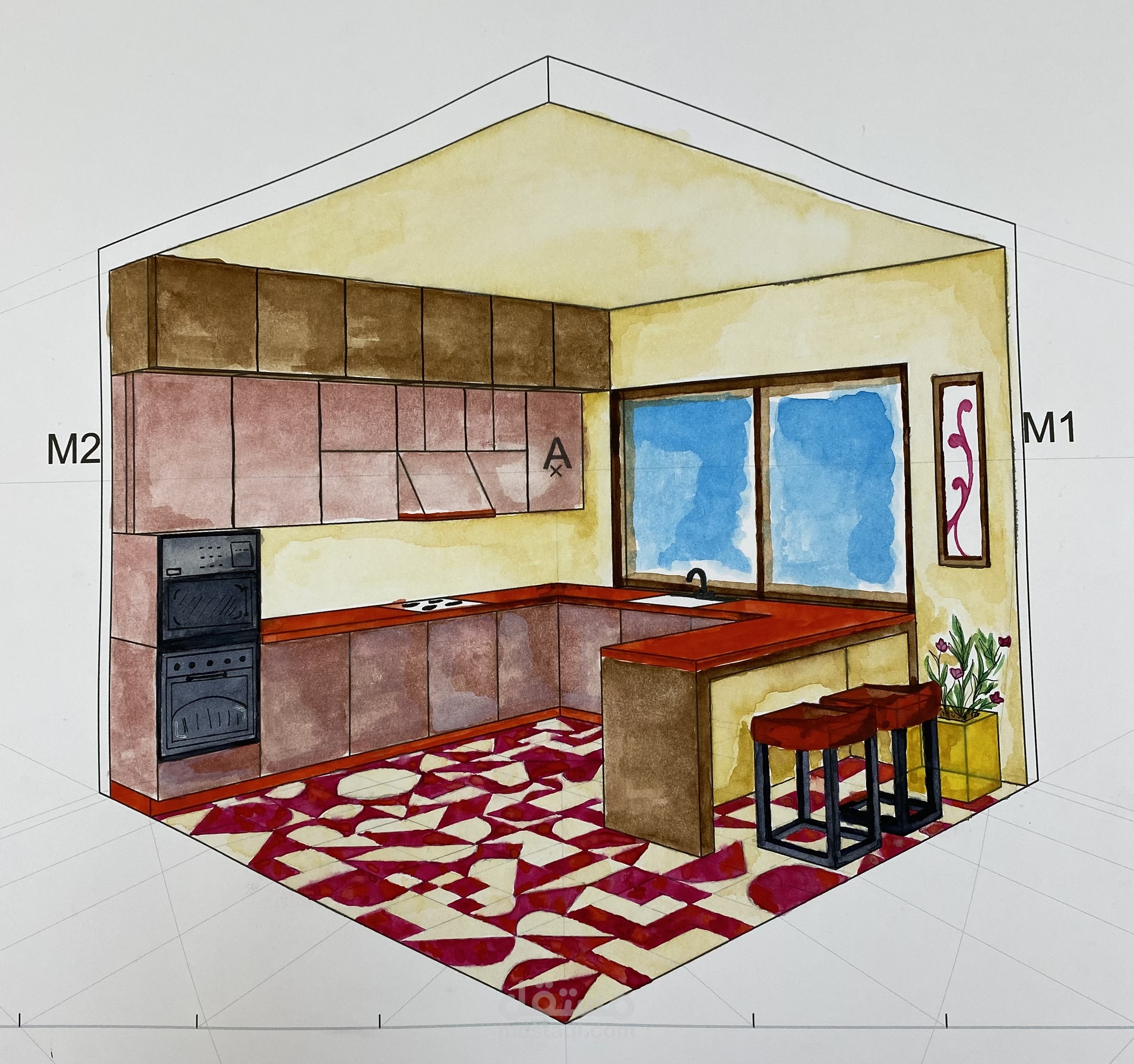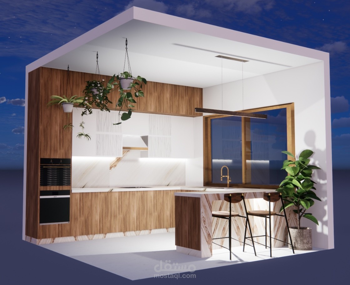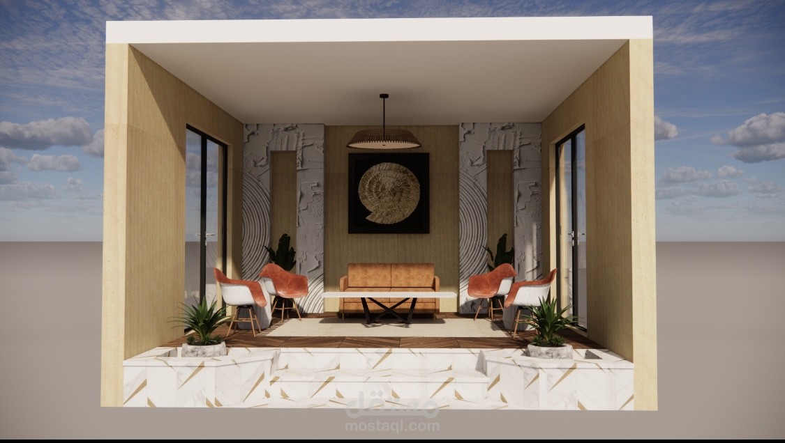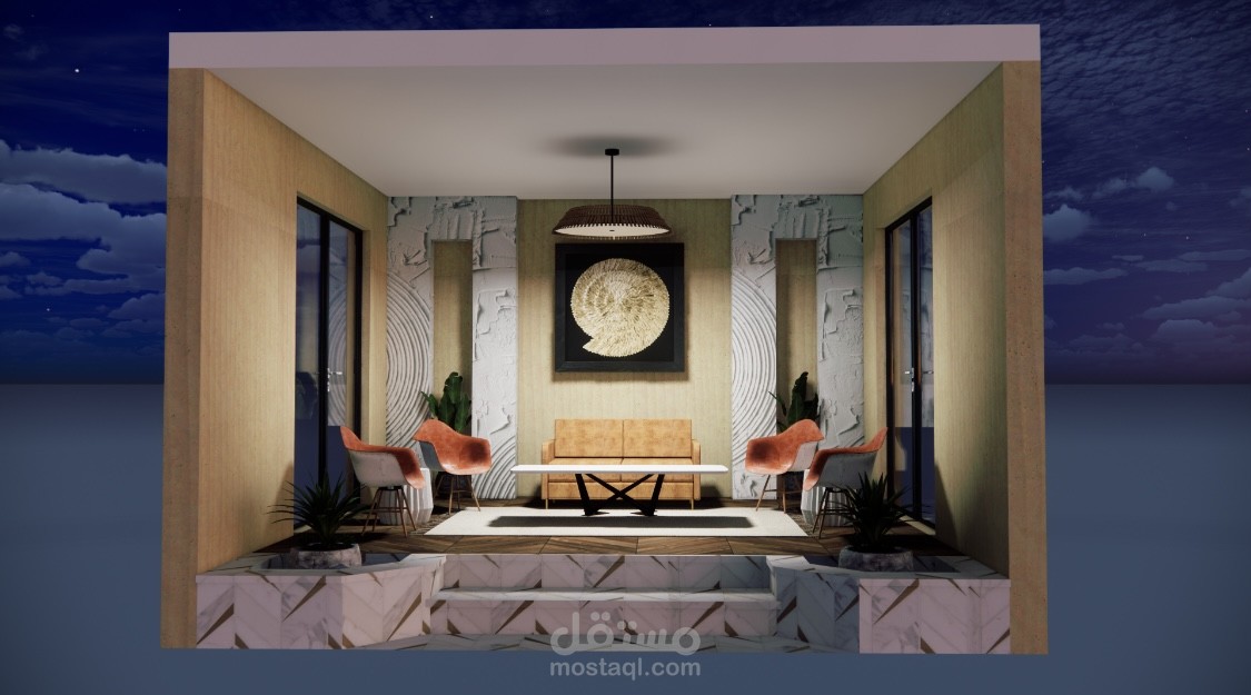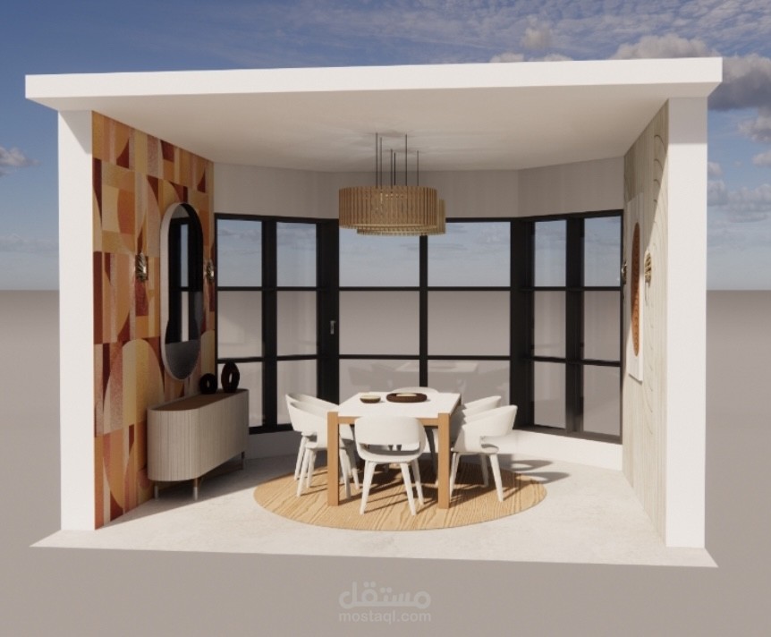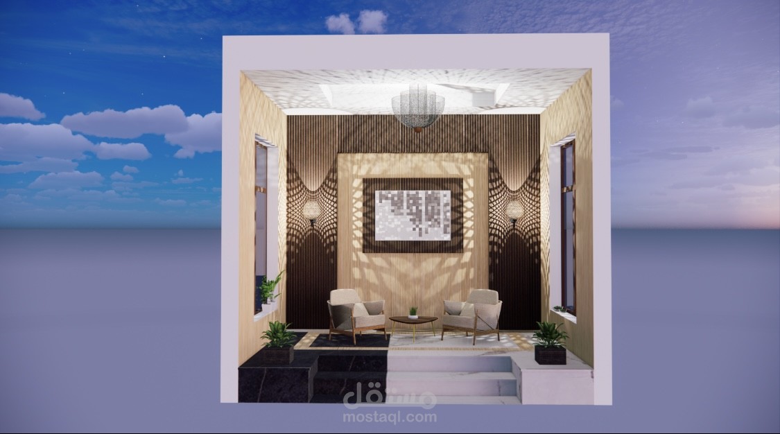 Different spaces with different styles using sketch up and enscape and some manual