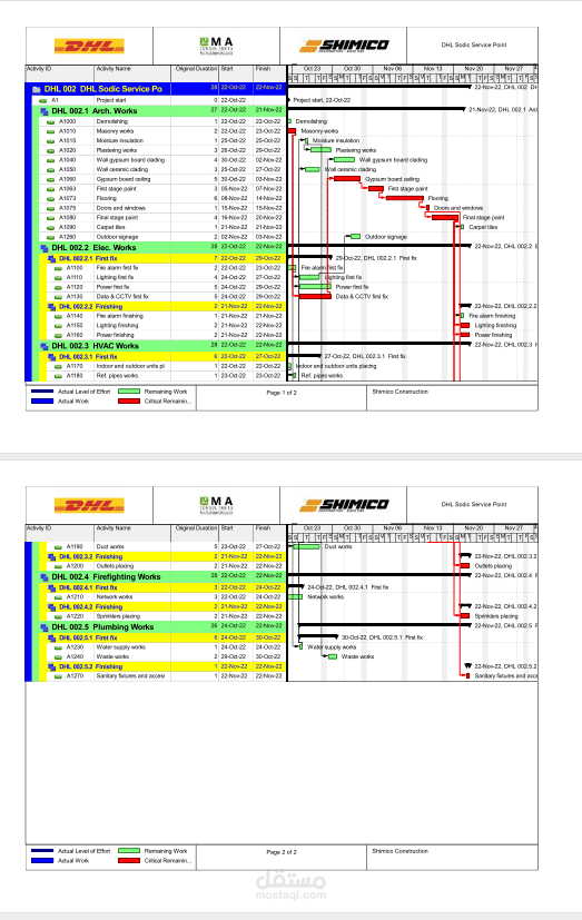 , Time schedule using Primavera for the commercial project including coordination between all activities (Architectural, Electrical ,Light current , Mechanical and Plumbing )