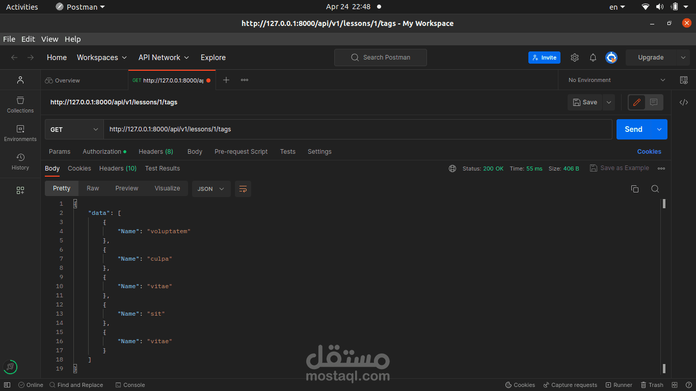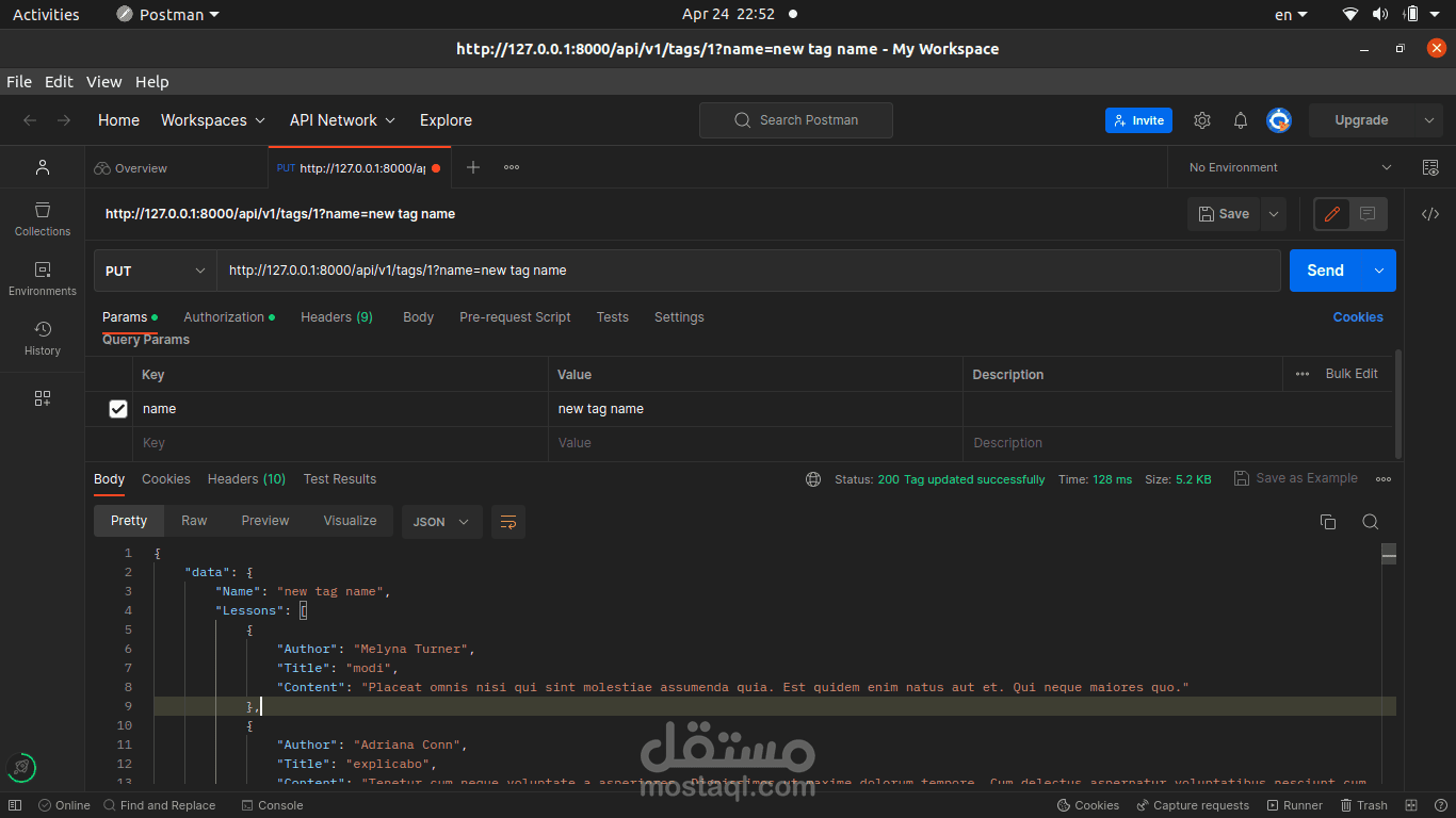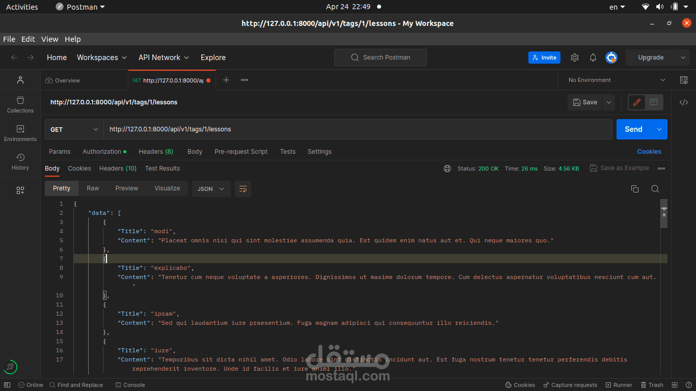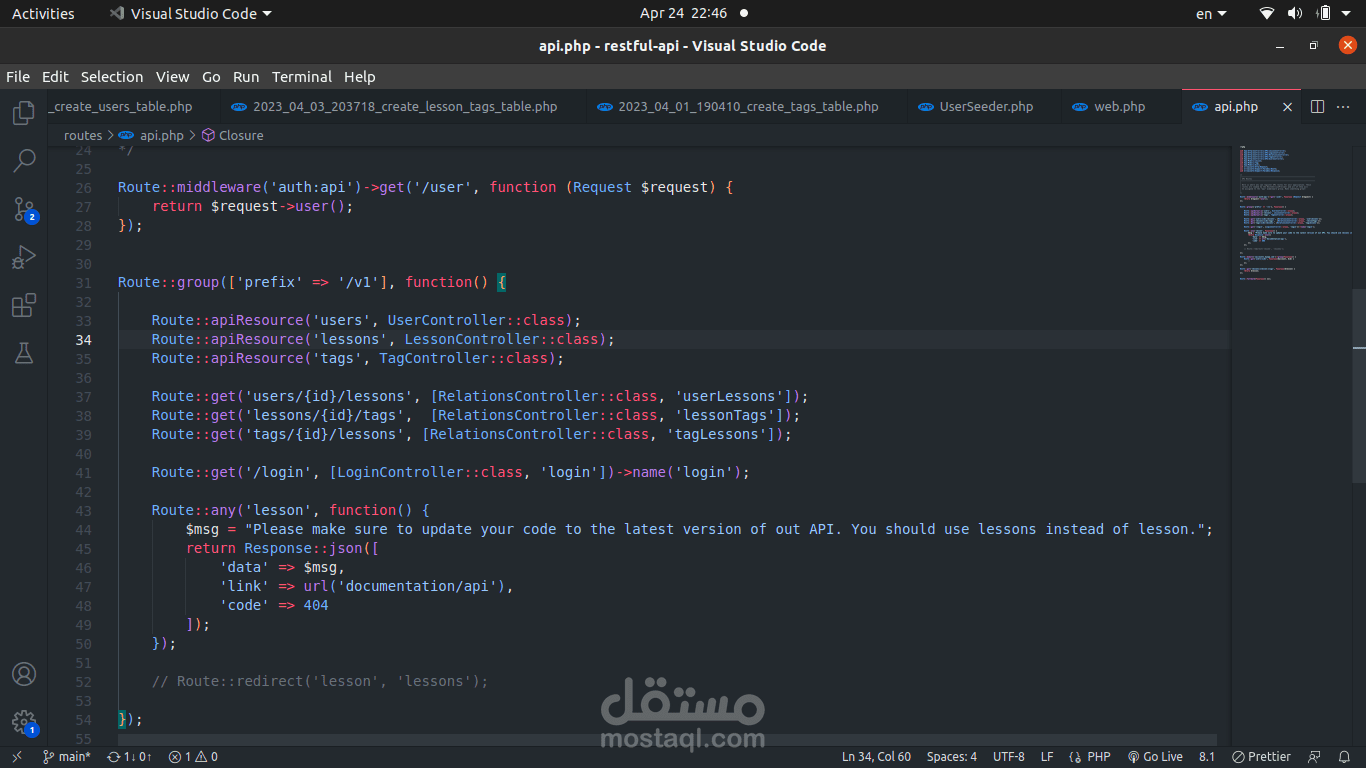 The project is a restful API to create/read/update/delete lessons by users, every user has many lessons, every lesson has many tags and every tag has many lessons. (relational databases)