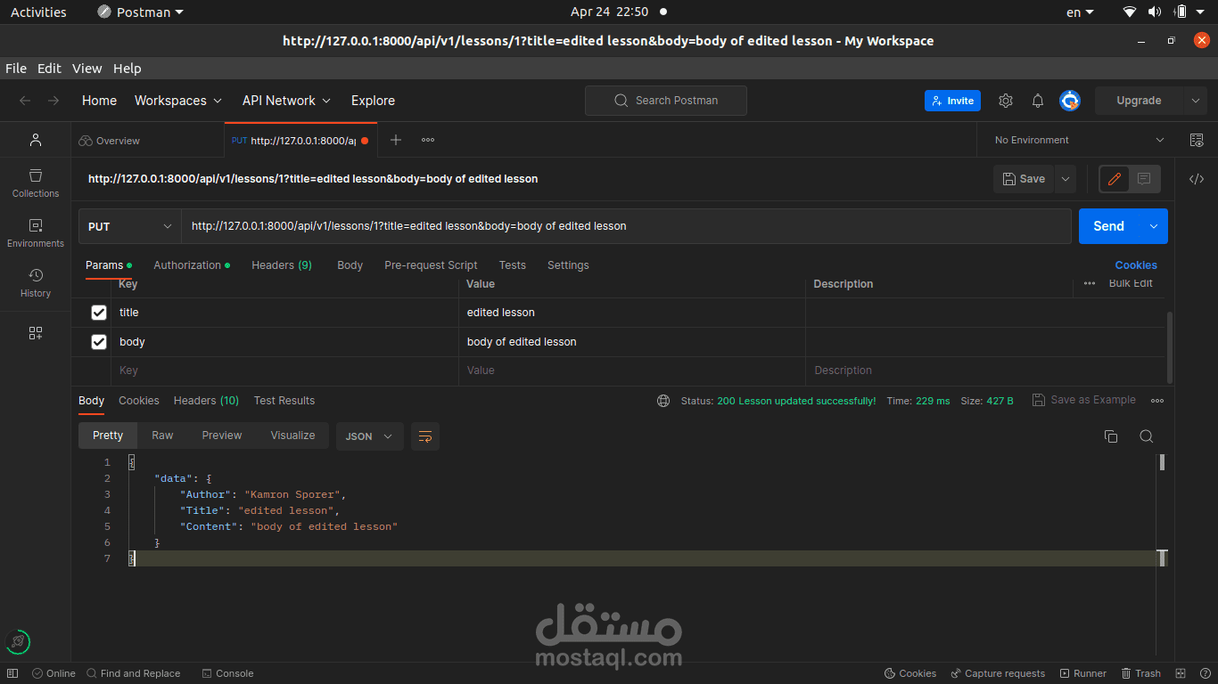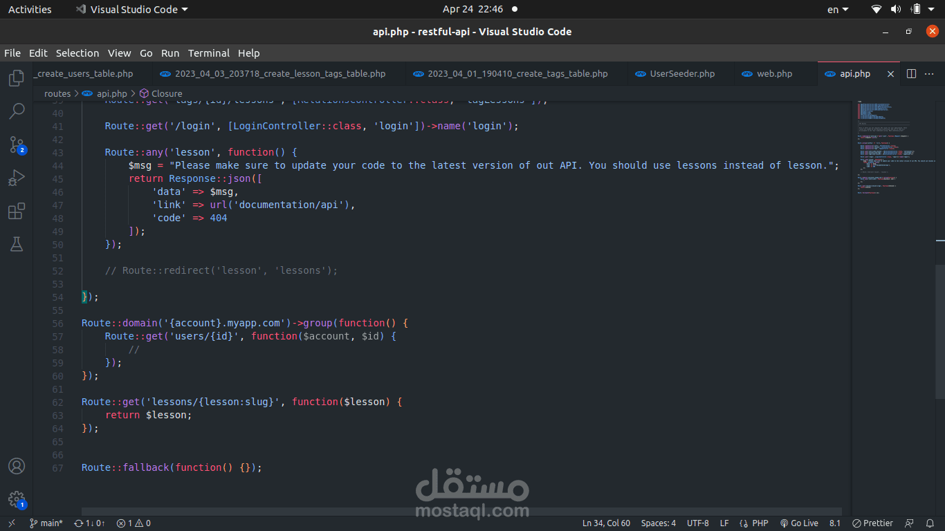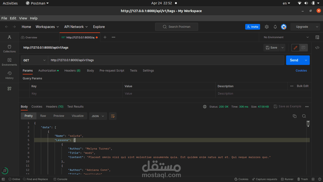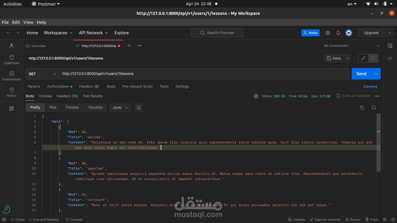 The project is a restful API to create/read/update/delete lessons by users, every user has many lessons, every lesson has many tags and every tag has many lessons. (relational databases)