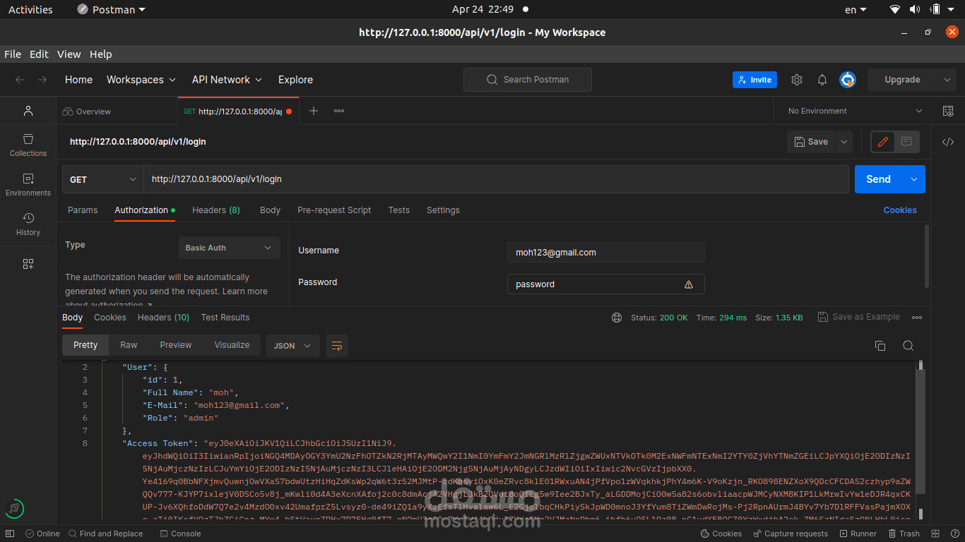 users can login using basic authentication (email + authentication) then he will get an Access token to navigate in the API (Oauth2 authentication).