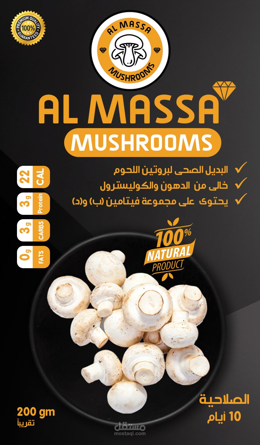 ملصق تجارى لشركة الماسة لزراعة وتجارة الماشروم