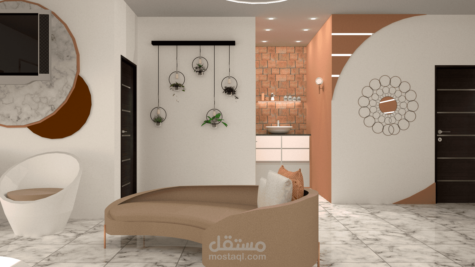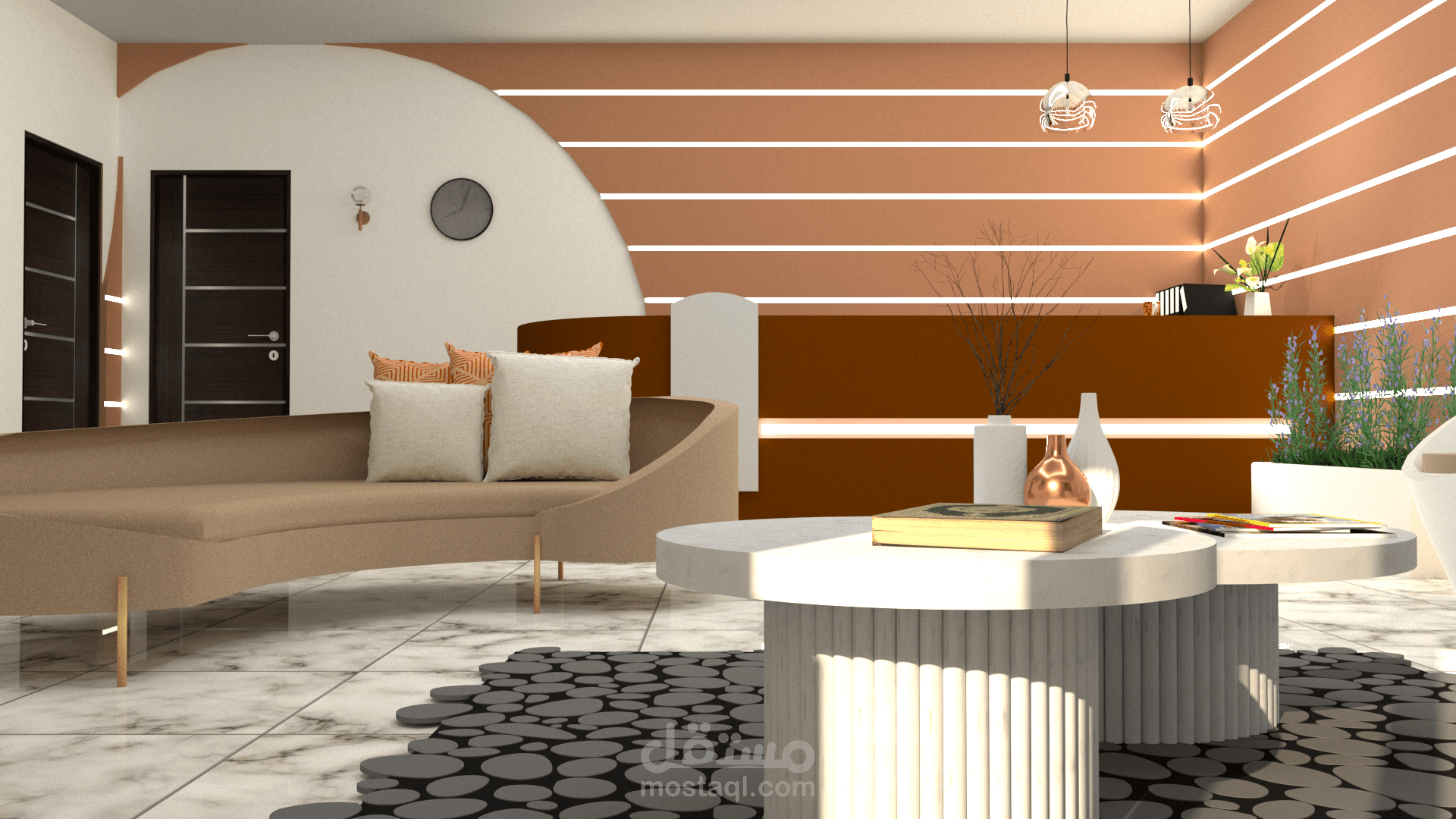 تصميم داخلى لغرفة استقبال عيادة طبيب