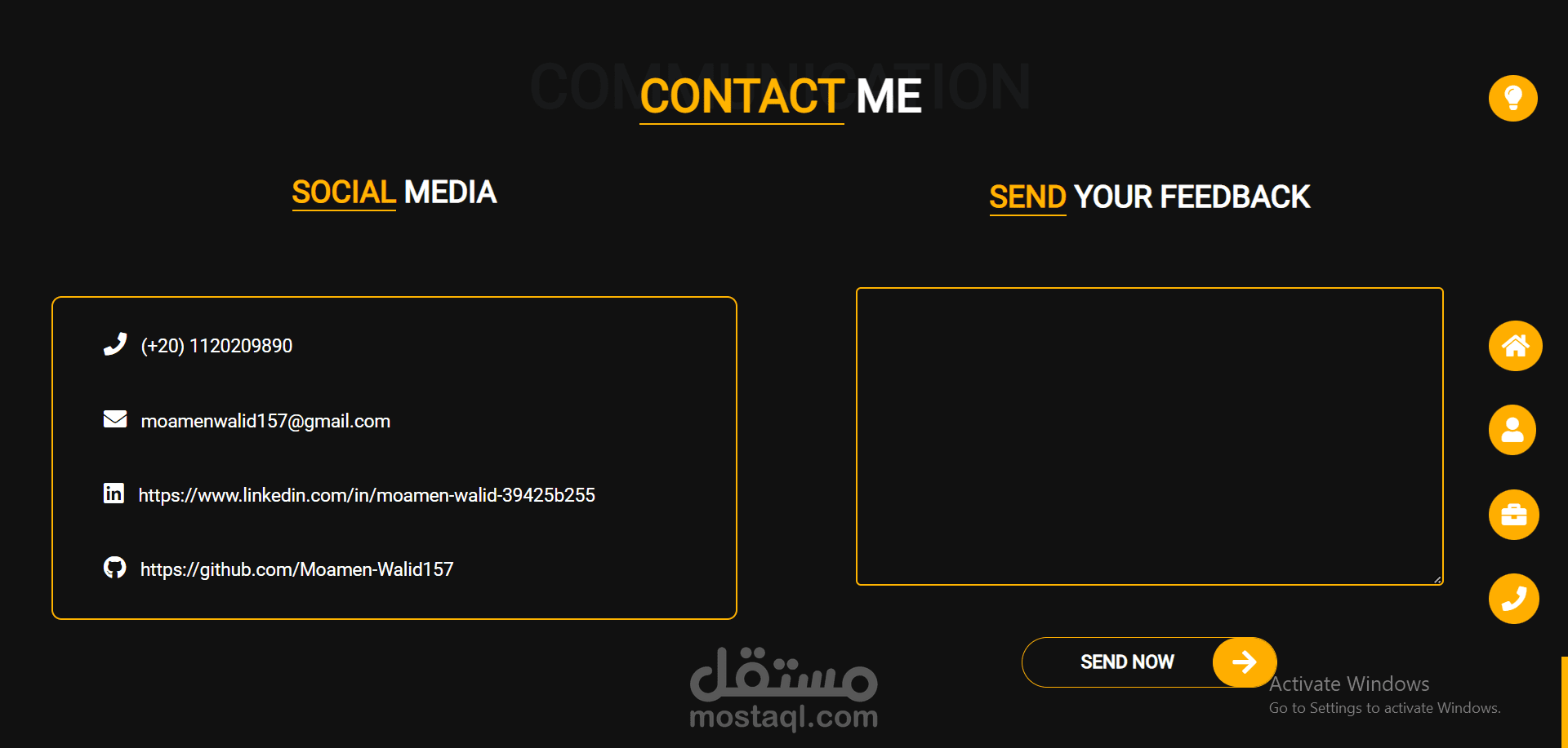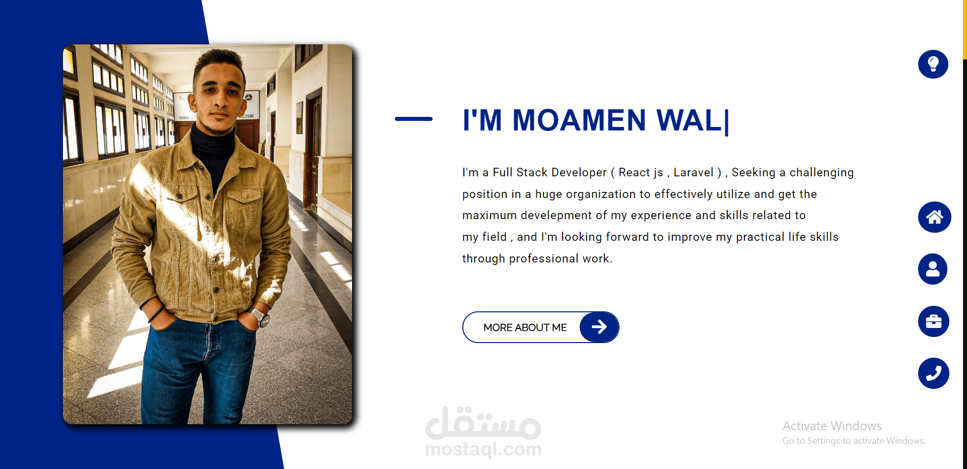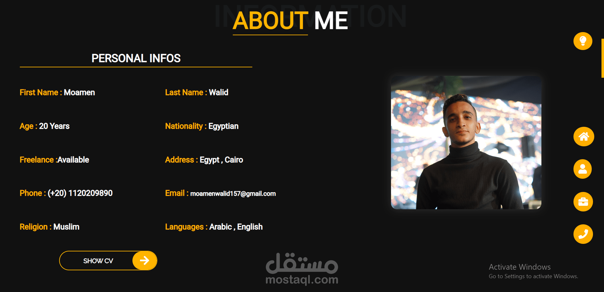 صفحة السيرة الذاتية الخاصة بي Portfolio page تعتبر من اقوى اعمالي حاليا في مجال Front-end development .