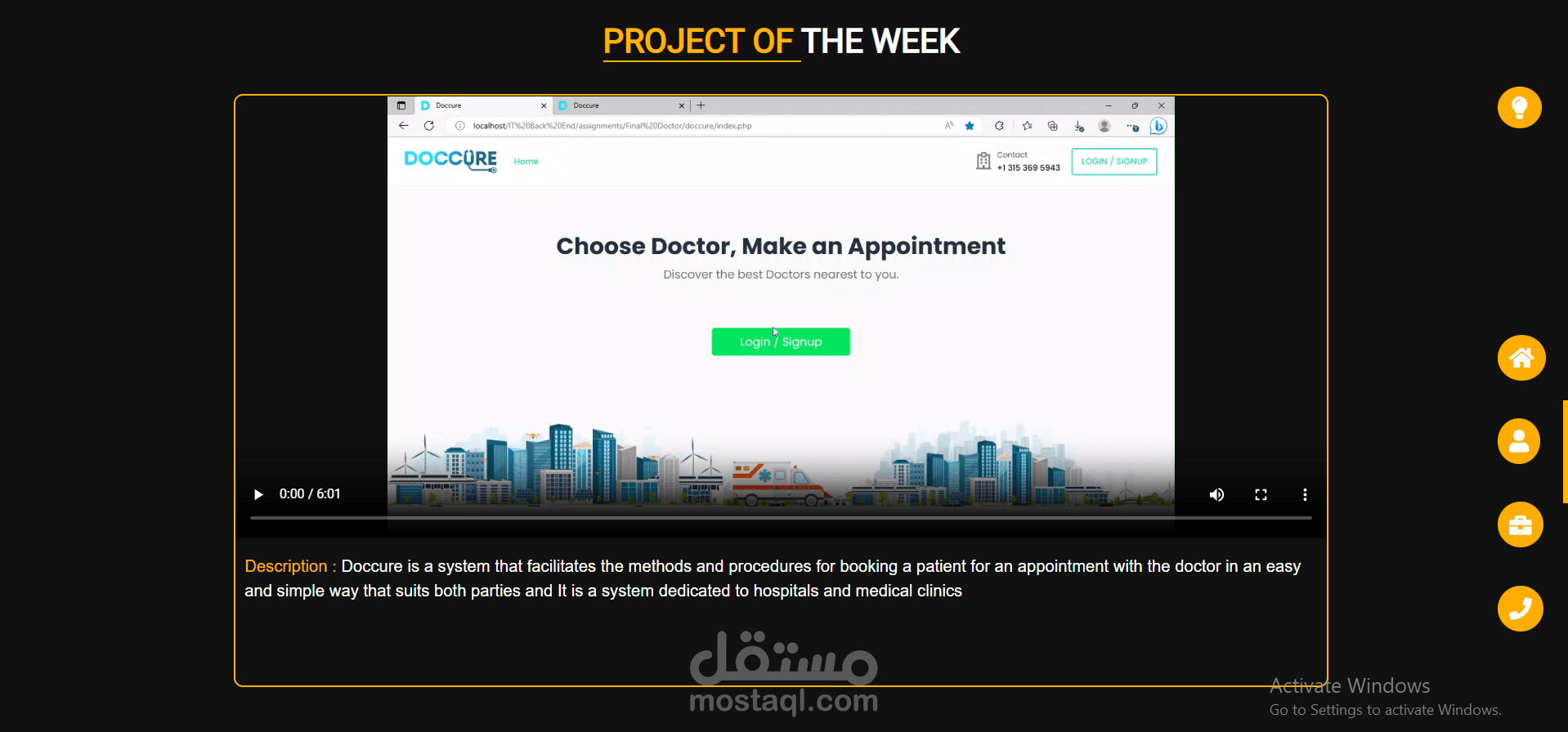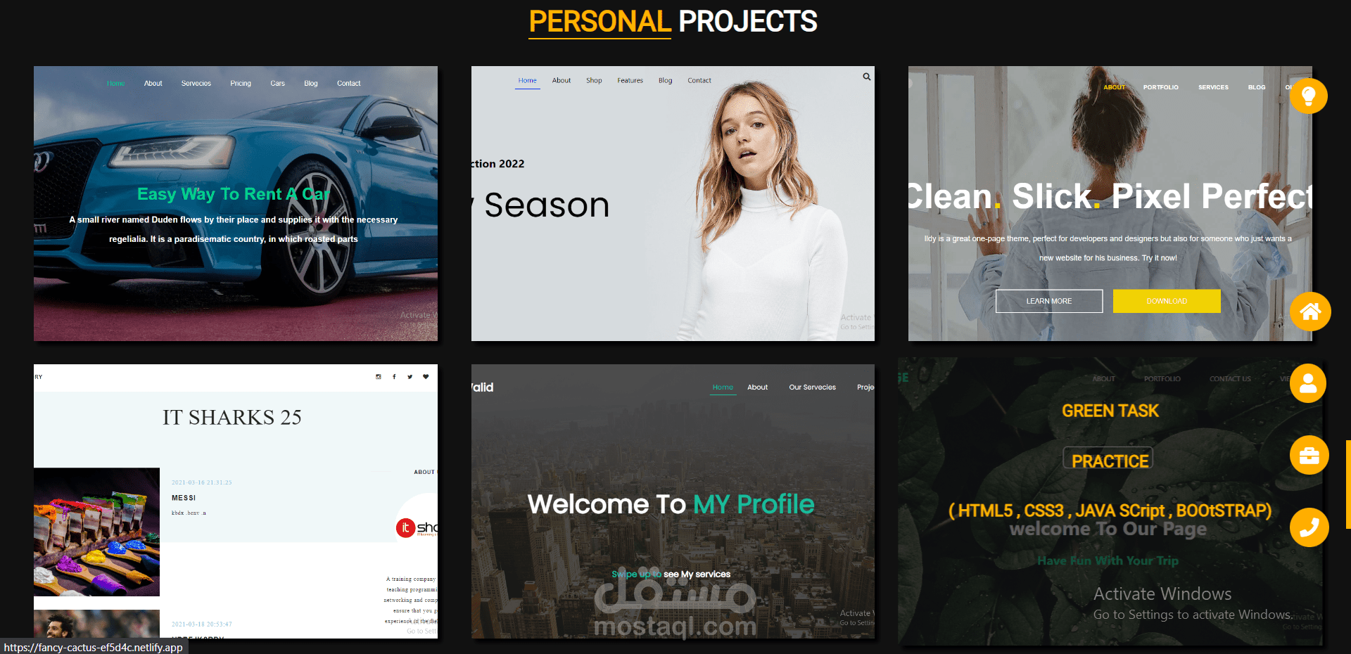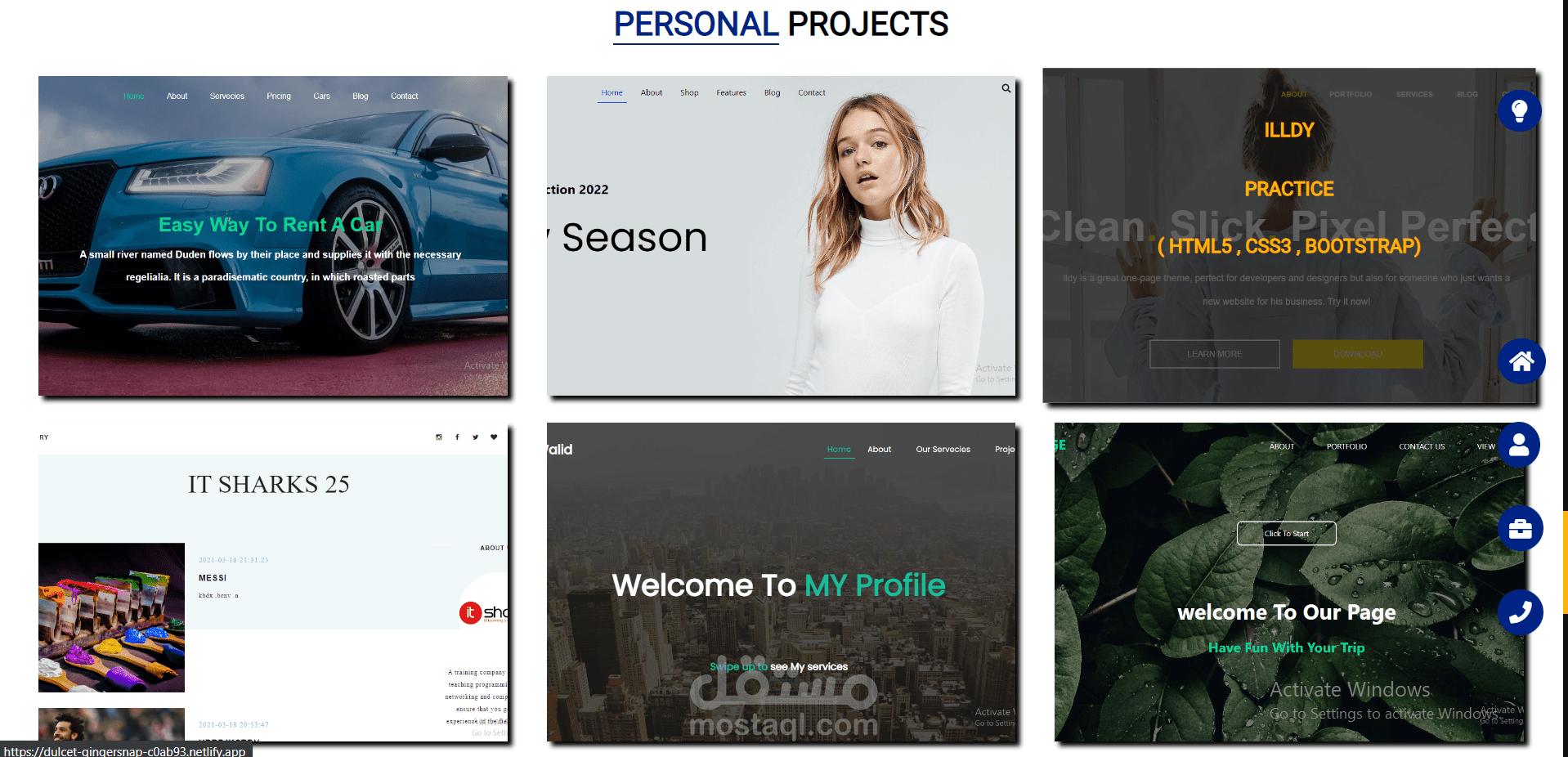 كما تمكنت من ادراج كل مشاريعي السابقة في صفحة كاملة داخل الموقع تسمى صفحة ( Projects )